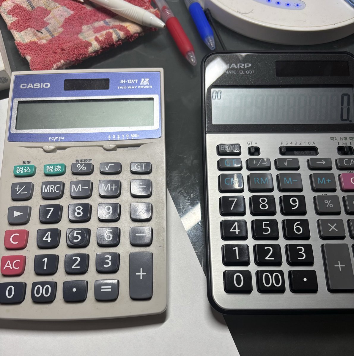 シャープちゃんやっぱ買って正解👍 機能性抜群!これからよろしく! けどカシオちゃん、君がいたから 簿記始めたて3級も 計算の手数が増えた2級も 挫折しかけた1級も 戦えたよ!! これからも傍にいてください😌 #会計士受験生 #cpa pic.x.com/Ba11Ybgtuy