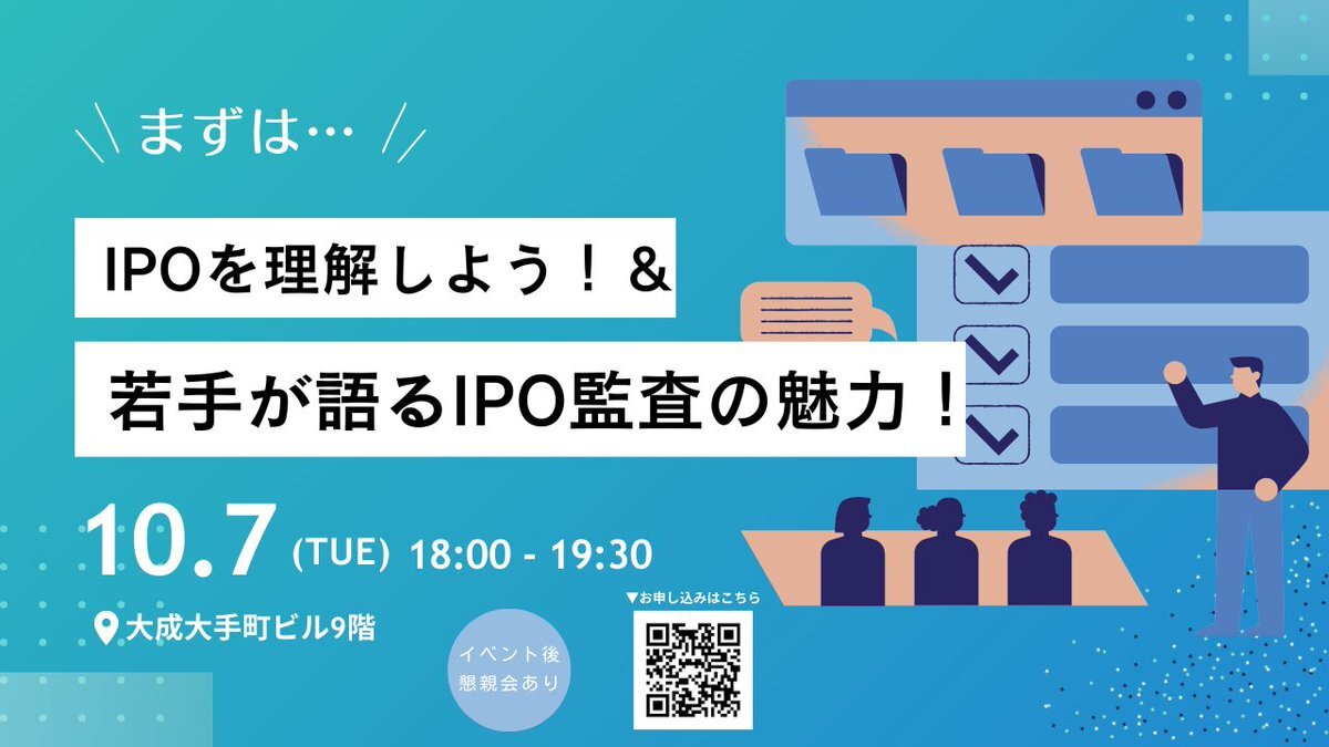 // 📢IPOについて理解しよう!   若手メンバーが語るIPO監査の魅力! \\ 10月7日(火)18:00-19:30 @大成大手町ビル9階 IPOという言葉は知っているけど、IPO監査って何するの⁇と悩む就活生必見!! 若手メンバーがIPO監査の魅力を詳しく解説します👀 ↓お申し込みフォーム job.axol.jp/bx/s/es-next_2…