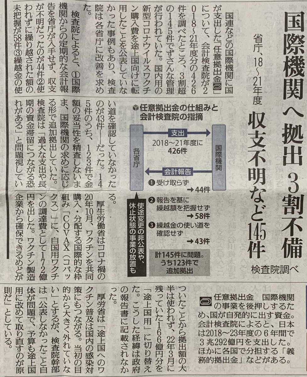 返信先:@ProfShimada日本の海外援助で大問題!会計検査院が国際機関への追加拠出(約4530億円)の3割で余剰資金未把握を指摘。中抜き疑念も。政府や外務省の管理意識不足が露呈。衆院外務委員会で追及を! x.com/ProfShimada/st… #海外援助 #会計検査院 #中抜き #税金 #政治改革