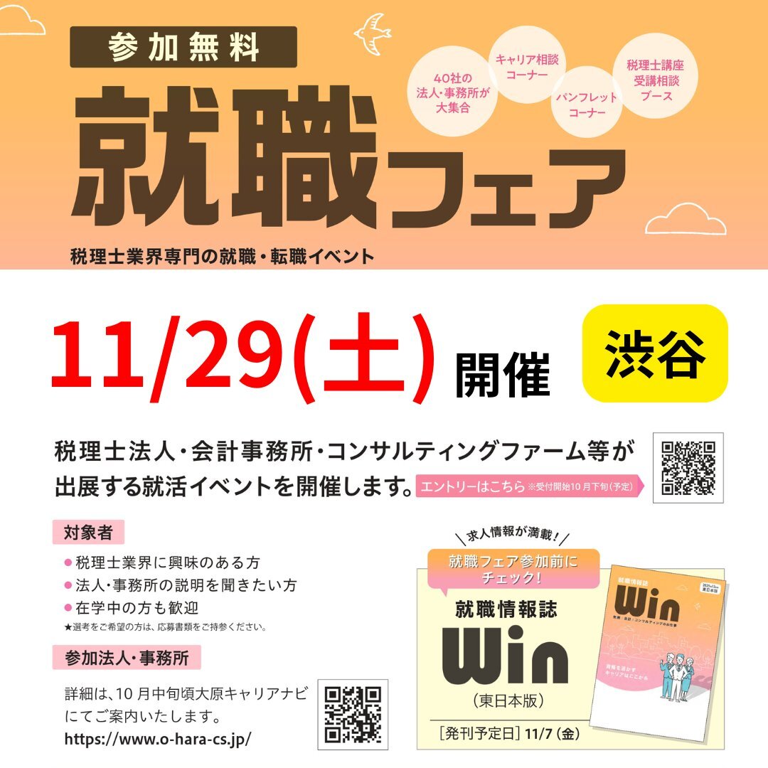 ✨税理士法人・会計事務所が渋谷に集結✨ 【税理士業界 就職フェア】11/29(土)開催‼️ 税理士業界への就職・転職を目指す方なら、どなたでも参加OK!《個別面談方式》だから気軽に質問できます😄情報収集だけでもOK👌 🔗詳細▶ o-hara-cs.jp/setumeikai/fai… #税理士 #就活 #会計事務所 #税理士法人 #大原