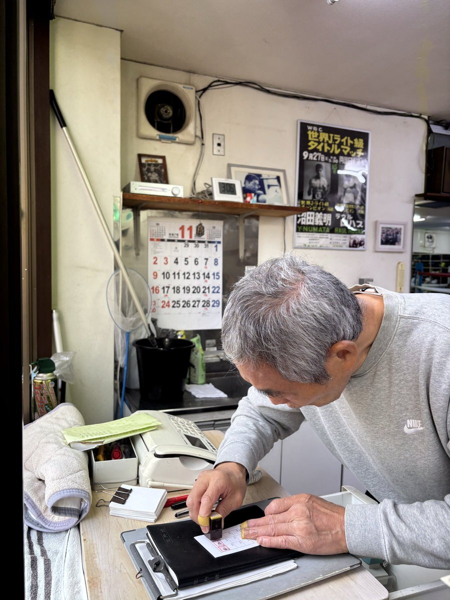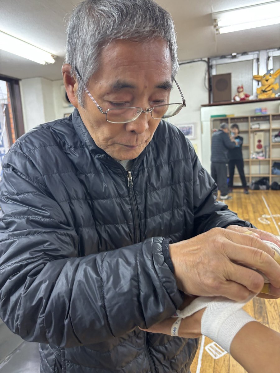 #会長曰く 二枚重ねだよ 急に一気に秋の気温… #沼田ボクシングジム 会長 沼田義昭 #会長 寒いのは苦手とのことで重ね着を工夫されていました 久しぶりに川村さんにミット練習いただきましたが、間があってもいいパンチだったとの言葉が嬉しく、練習まだまだがんばろうと思いました pic.x.com/jVAgRBQgPi