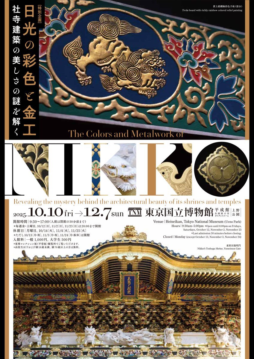 ▽次の企画展 📍東京 特別企画 「日光の彩色と金工 社寺建築の美しさの謎を解く」 会期:2025年10月10日(金)~12月7日(日) 会場:東京国立博物館 平成館 企画展示室・ガイダンスルーム nikko.dougukan.jp/tokyo/ #竹中大工道具館 #東京国立博物館 #日光の彩色と金工展 #伝統建築工匠の技 #日本博 pic.x.com/ZpgJAtxs2f