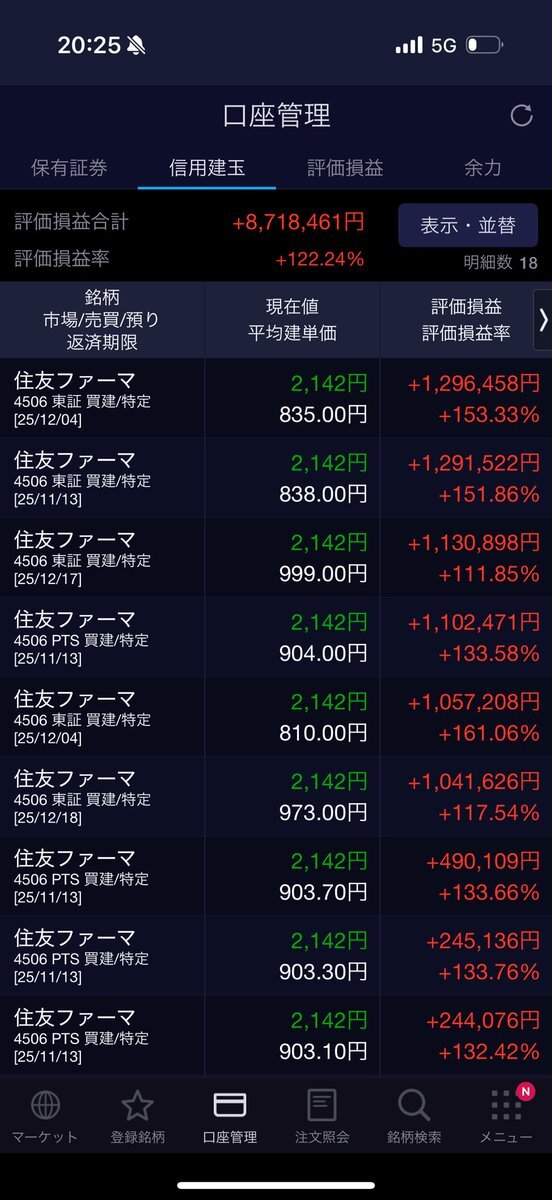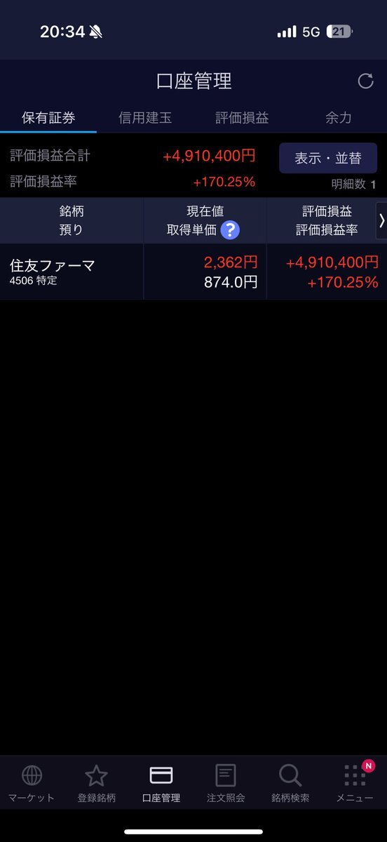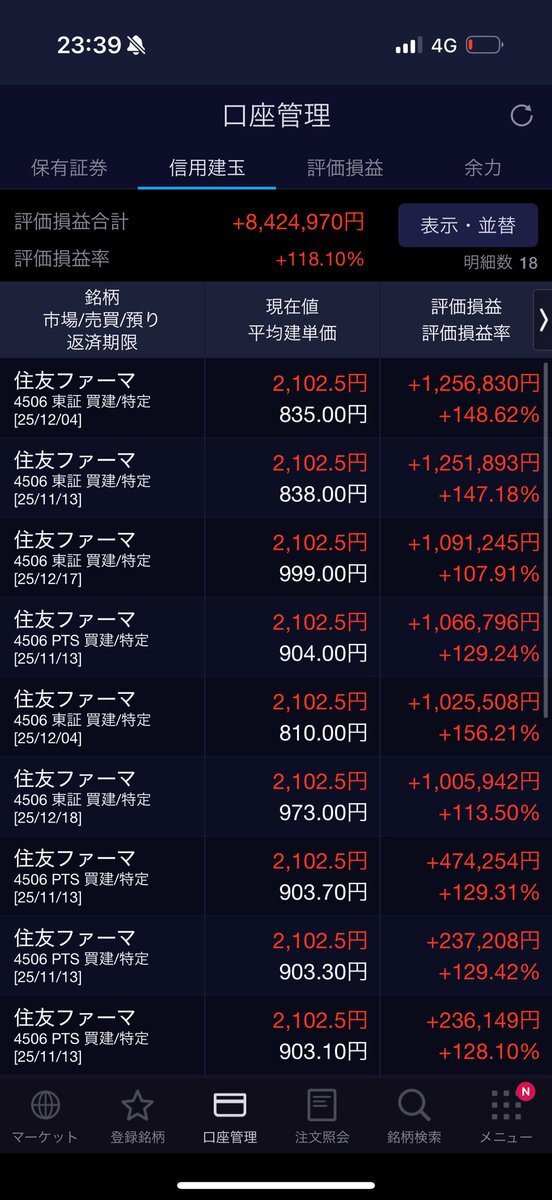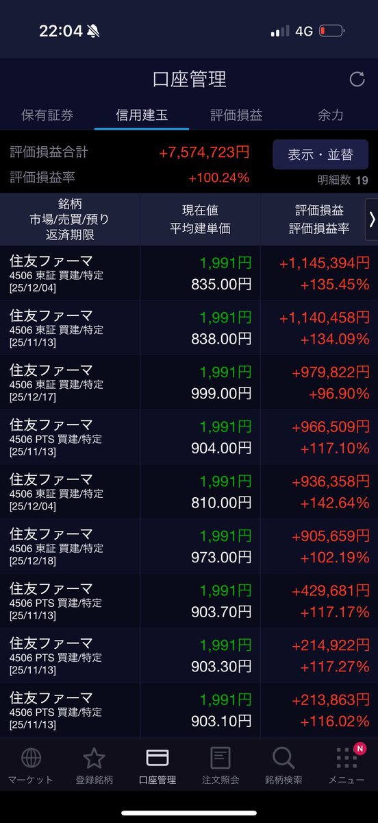 11月4日 前日比+300万! 7500株でストップ高の破壊力💥 記念に1枚だけ利確して残り7400株に。 やっとぶち抜いてくれて嬉しい! #住友ファーマ #バイオ #株 pic.x.com/PuKReTLz4e