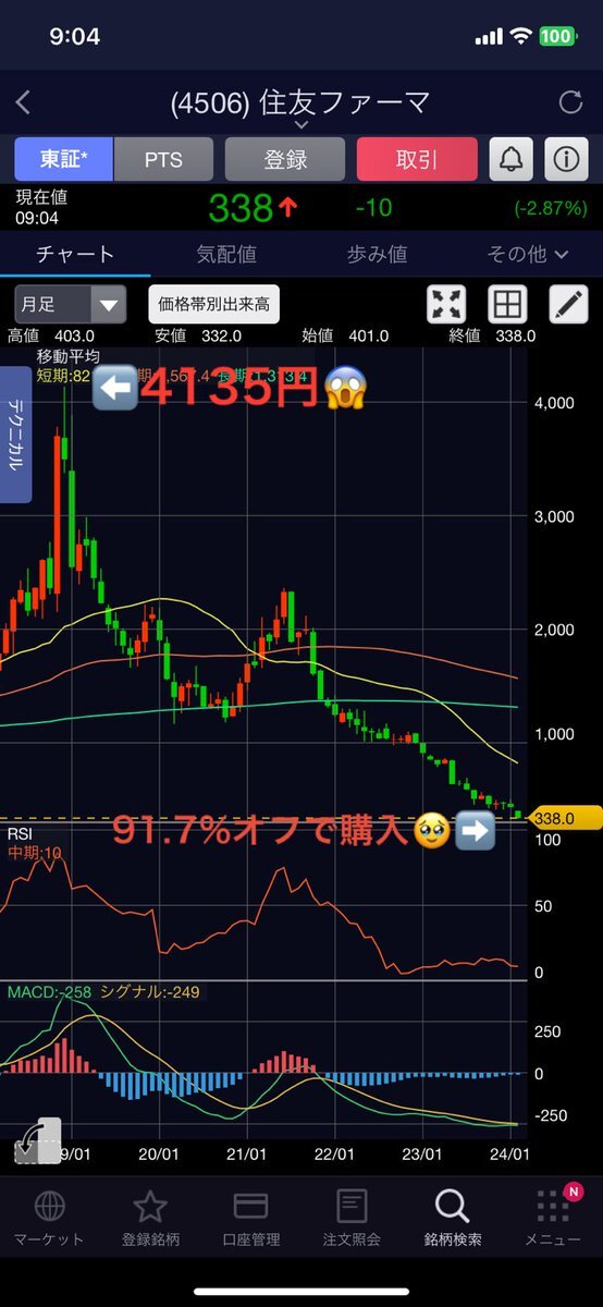 来たコレ、#住友ファーマ もっと買っておけば良かった定期(笑) …まあ偶然なのでね、自分の予想が当たったわけでも無いのでね、調子に乗るのは危険… サンバイオもそうだけど、今年に入ってからバイオ株を現物買いするようになって、かなりのラッキーが続いてる感。そしてこれいつ売るの…?ww #株 pic.x.com/ZTznaPaeli