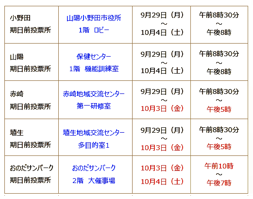山陽小野田市議会議員選挙 10/5(日)投開票   日本維新の会公認【 佐々木 まさひろ 】   期日前投票に行こう👫 投票所と日時(画像参照)   #山陽小野田市 #山陽小野田市議選 #佐々木まさひろ #日本維新の会