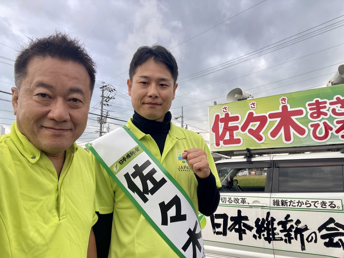 皆様のおかげで、山陽小野田市議選の初日を終える事ができました。ありがとうございます。 明日も皆様の元へ、佐々木 まさひろ の熱い気持ちを届けに行きます! #日本維新の会 #佐々木まさひろ #山陽小野田市議選 #山口3区 #山陽小野田市