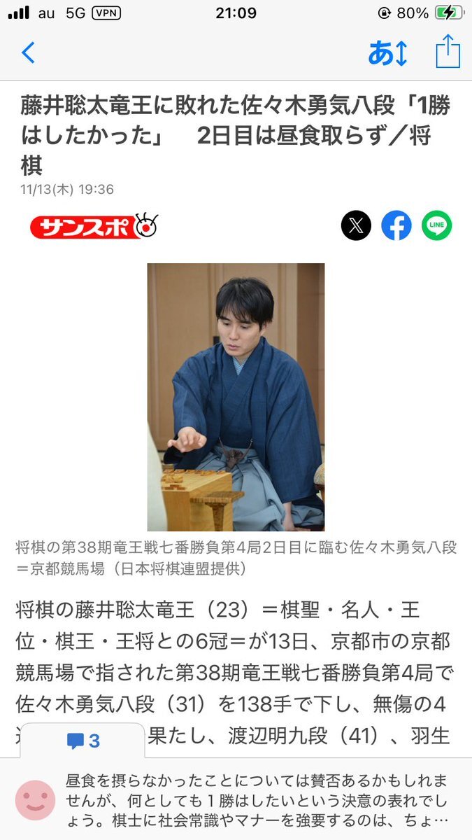 【竜王戦】佐々木勇気八段「終盤で甘さを感じました」…4連敗で終え「早めに1勝したかった」 #佐々木勇気八段 #藤井聡太竜王 nikkansports.com/general/nikkan…