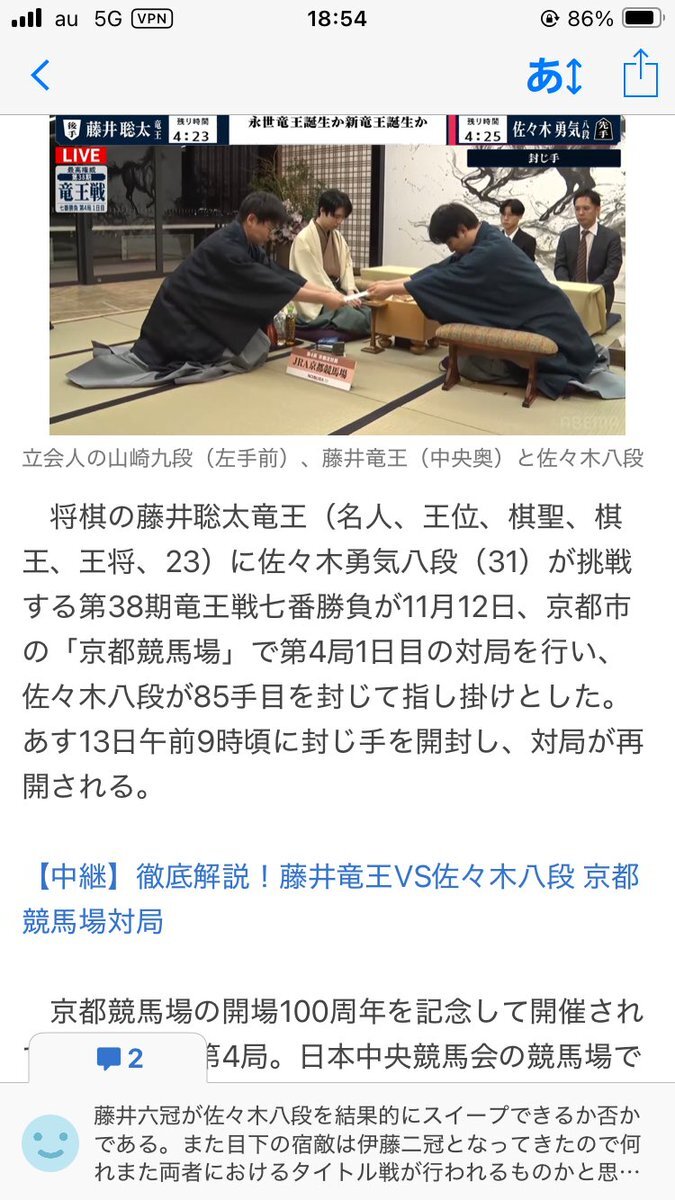 読売新聞オンラインの中継ブログが面白い😊 勇気八段の人柄も垣間見れて好感度↑w 第38期竜王戦七番勝負第4局11月12日ー13日。 京都競馬場100周年記念事業の一環、対局場は京都競馬場特別室『菊の間』。 #藤井聡太竜王 #佐々木勇気八段 #桂馬 #武豊 youtu.be/f9a4Es0IOpI pic.x.com/MHkGOXS4F3 x.com/sikimizu_/stat…