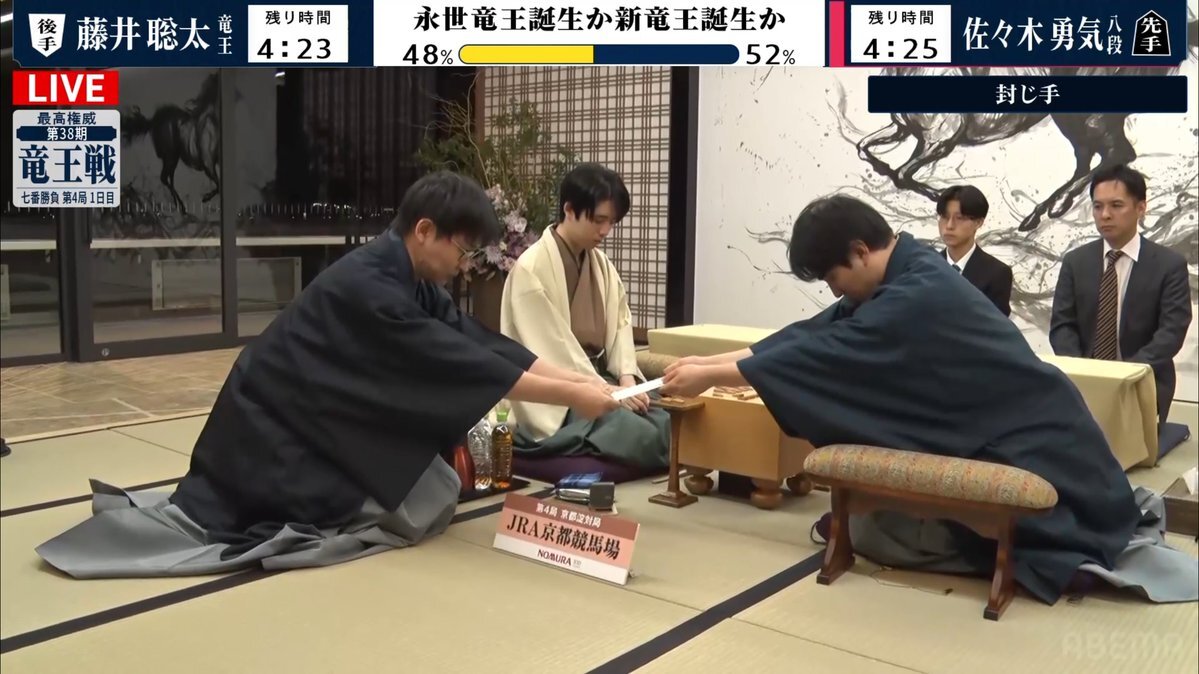 【竜王戦第4局・動く棋譜速報】藤井聡太竜王が佐々木勇気八段に勝利し竜王5連覇、「永世竜王」資格獲得…新たな「ディープ伝説」京都競馬場で yomiuri.co.jp/igoshougi/ryuo… 【写真特集】藤井聡太「永世竜王」への道 はこちら yomiuri.co.jp/slides/s/fujii… #将棋 #竜王戦 #藤井聡太竜王 #佐々木勇気八段