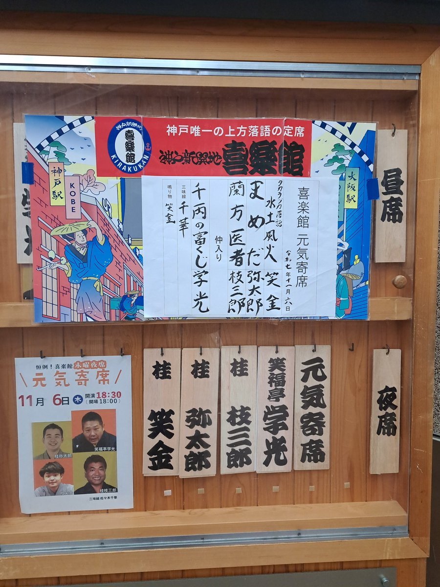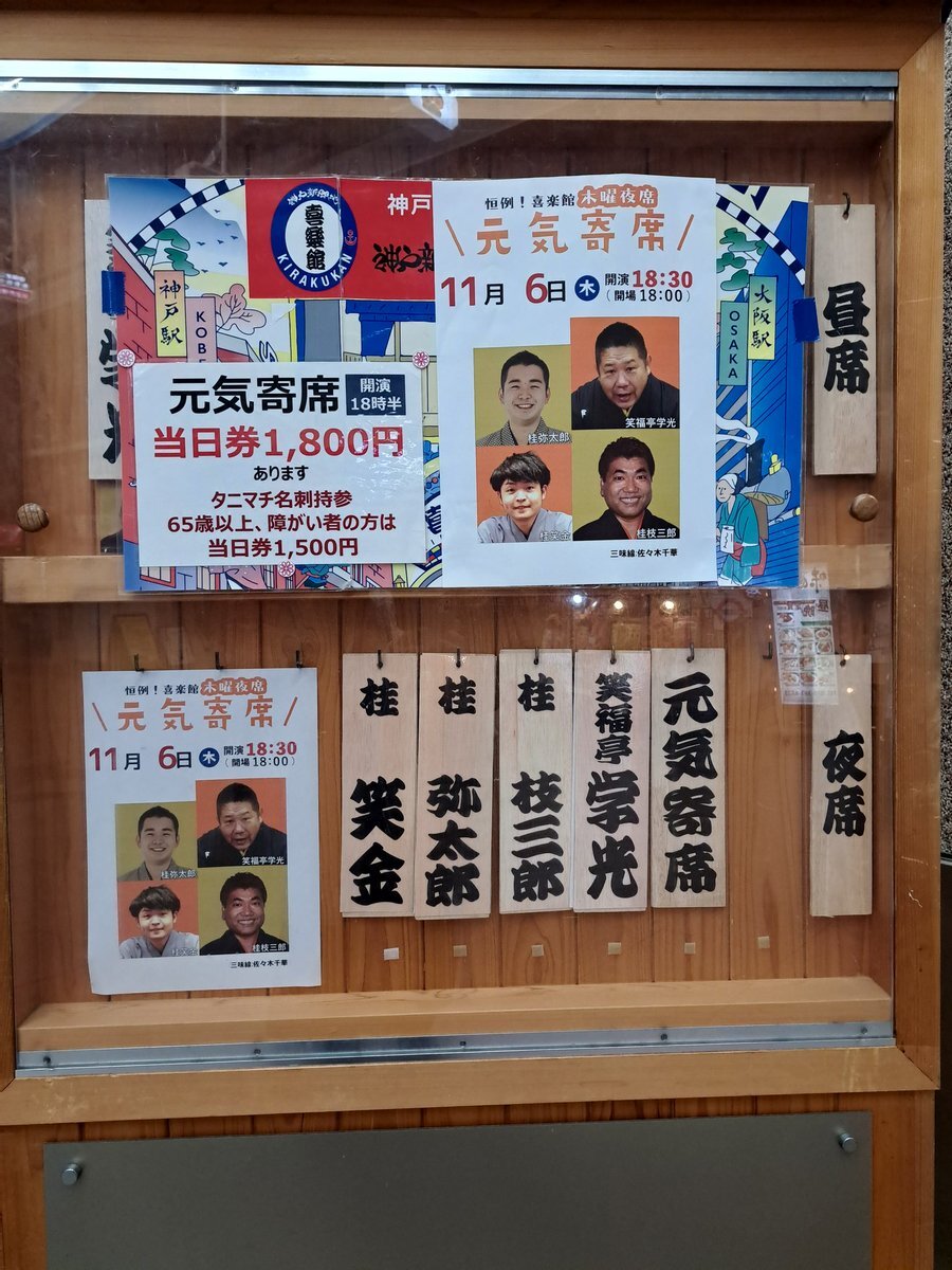神戸新開地・喜楽館 #元気寄席  2025.11.6(木)18時30分 ・タカラヅカ落語 水土風火 #桂笑金 ・まめだ #桂弥太郎 ・蘭方医者 #桂枝三郎  仲入り ・千両の富くじ #笑福亭学光 三味線 #佐々木千華 鳴り物 笑金 笑金さんジェンヌ😍 弥太郎さんは秋らしいネタ🍂 枝三郎師匠と学光師匠はレアなネタ😲 pic.x.com/cYAIcOqSgz x.com/vanilla1775277…