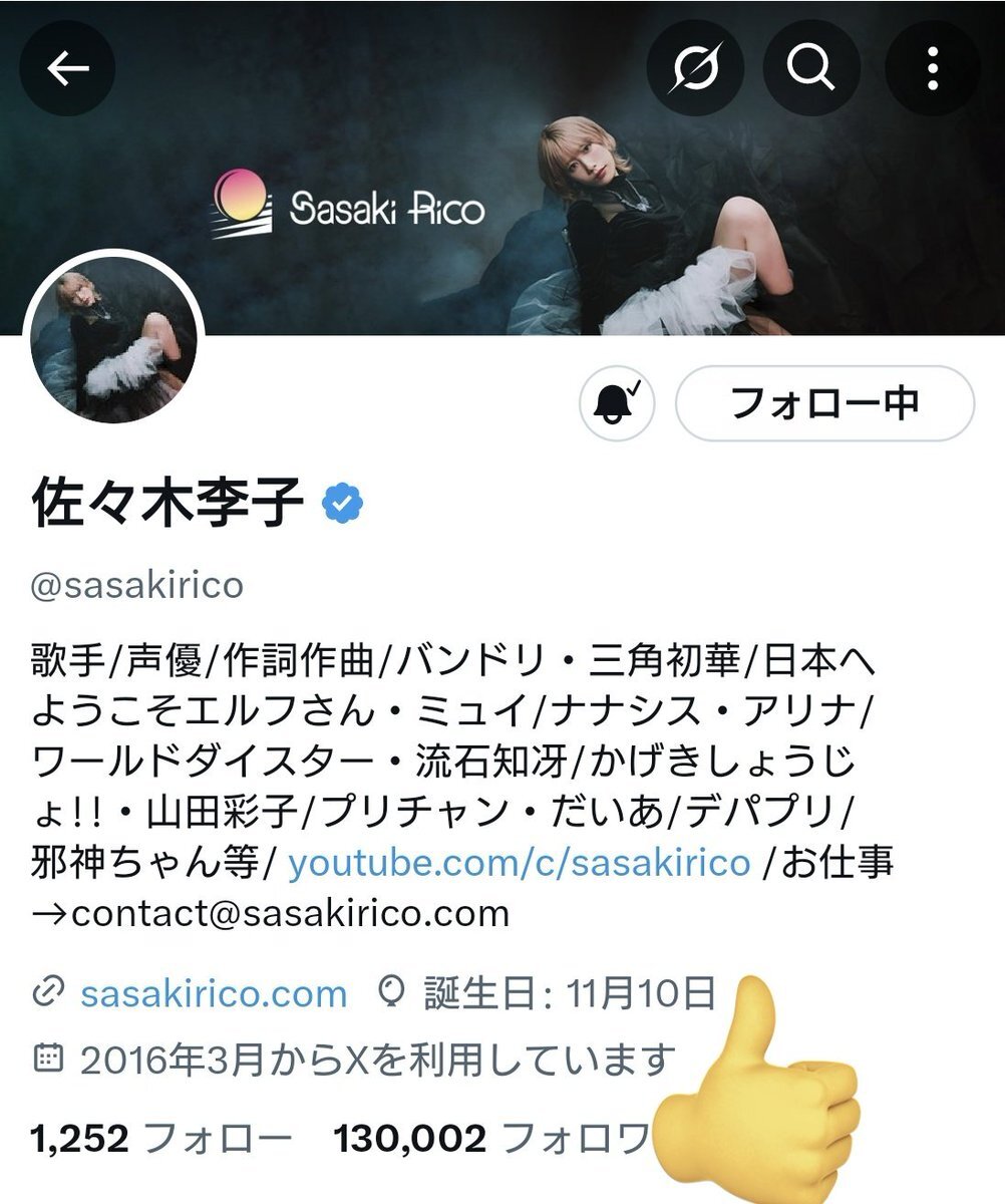 フォロワーが13万人を突破したなんて…! おめでとうございます!! これまで積み重ねてきた一歩一歩の努力が、こうして形になって返ってきているんだね これからもっと多くのスポットライトが、りこちを照らしますように #りこのトリコ #佐々木李子 pic.x.com/4f9SXWU2jQ