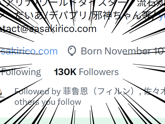 フォロワー13万人突破おめでとうございます!🎉🎉🎉 フォローしてから、もう10万人以上も増えていて、本当に喜ばしいことです。☝️ 努力を続けていけば、りこちはこれからもどんどん強くなれるよ!がんばってね!ファイトりこ💪 #りこのトリコ #佐々木李子 pic.x.com/SrNuCSLiSW