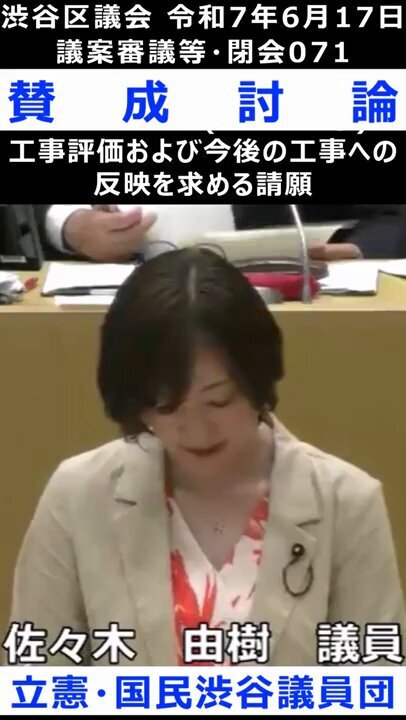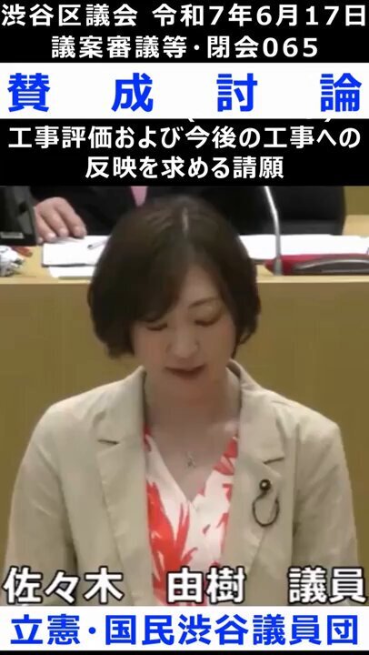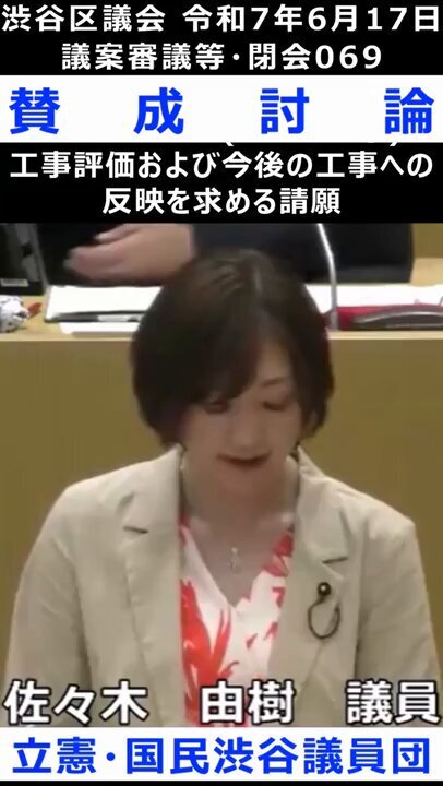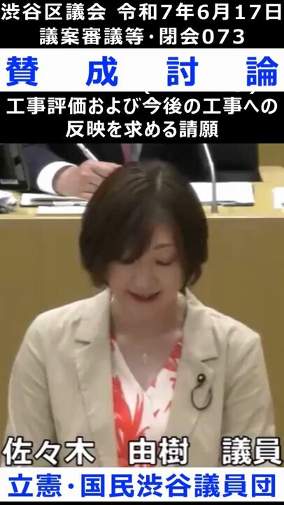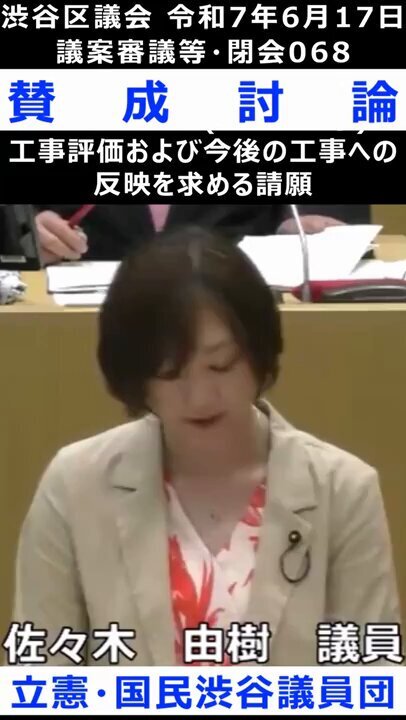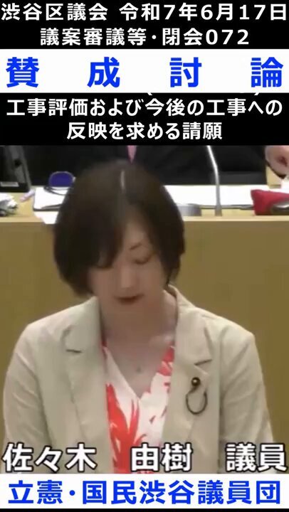 渋谷区議会 令和7年6月17日 072 日程第31 笹塚・大山緑道(工事その①)の工事評価および今後の工事への反映を求める請願 賛成討論 佐々木由樹 議員(立憲・国民)#shorts youtube.com/shorts/dpfG6z2… #渋谷区議会 #佐々木由樹 #立憲・国民 #立憲・国民渋谷議員団 #賛成討論 #玉川上水旧水路緑道 #笹塚緑道 x.com/Shibuya_no_Sor…