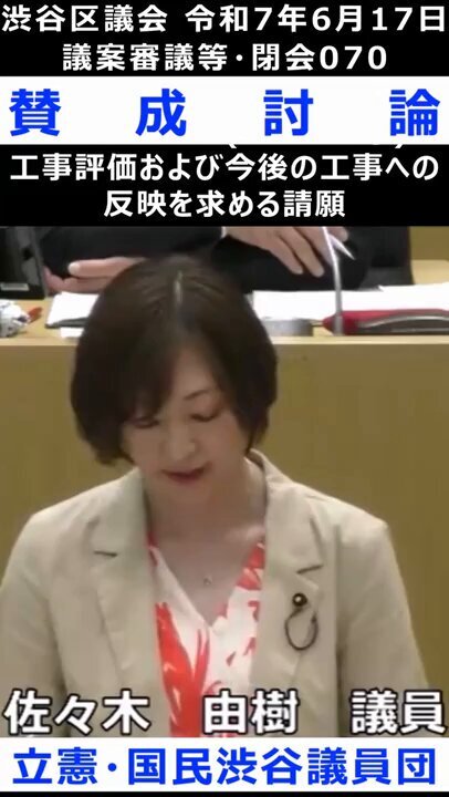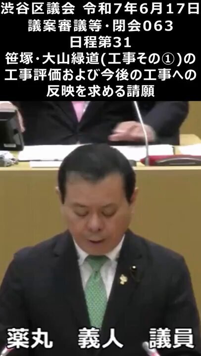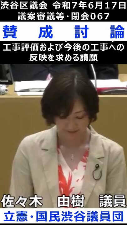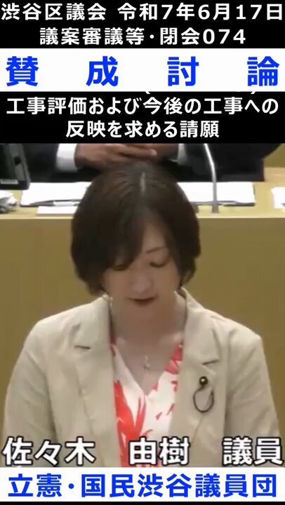 渋谷区議会 令和7年6月17日 064 日程第31 笹塚・大山緑道(工事その①)の工事評価および今後の工事への反映を求める請願 賛成討論 佐々木由樹 議員(立憲・国民)#shorts youtube.com/shorts/B_UbhOy… #渋谷区議会 #佐々木由樹 #立憲・国民 #立憲・国民渋谷議員団 #賛成討論 #玉川上水旧水路緑道 #工事評価 x.com/Shibuya_no_Sor…