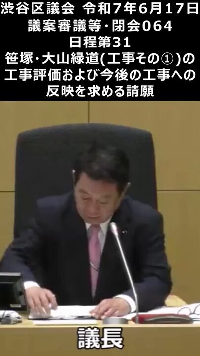 渋谷区議会 令和7年6月17日 063 日程第31 笹塚・大山緑道(工事その①)の工事評価および今後の工事への反映を求める請願 #shorts youtube.com/shorts/TnFmpH8… #渋谷区議会 #薬丸義人 #都市環境委員会 #玉川上水旧水路緑道 #笹塚緑道 #大山緑道 #テラゾ #植栽 #請願 #不採択 #委員長裁決 #決定 x.com/Shibuya_no_Sor…