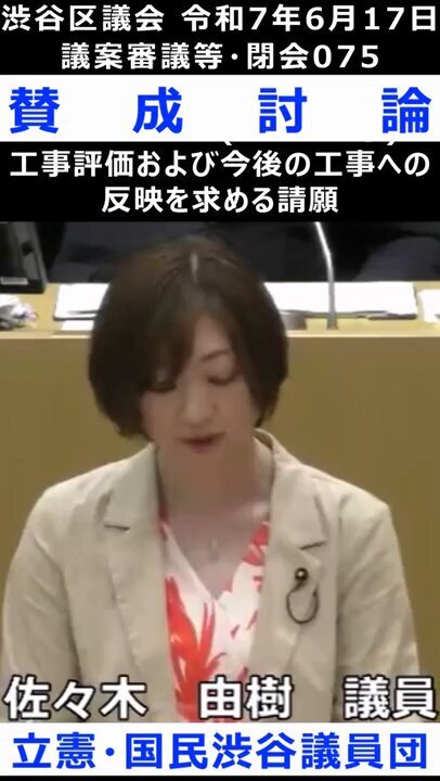 渋谷区議会 令和7年6月17日 075 日程第31 笹塚・大山緑道(工事その①)の工事評価および今後の工事への反映を求める請願 賛成討論 佐々木由樹 議員(立憲・国民)#shorts youtube.com/shorts/IykFTYe… #渋谷区議会 #佐々木由樹 #立憲・国民 #立憲・国民渋谷議員団 #賛成討論 #玉川上水旧水路緑道 #工事評価 x.com/Shibuya_no_Sor…