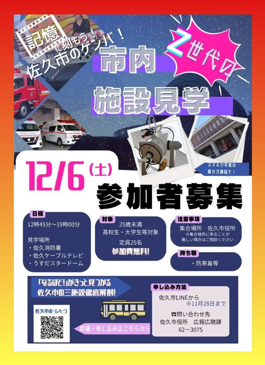 #佐久市 ☀️【25歳未満限定 市内施設見学】のご案内📣 市内の施設を見学していただき、市民の皆さんに市政への理解と関心を深めていただくとともに、市政に対する意見や感想をいただき、今後の市政推進に反映させることを目的として、施設見学が実施されます😊 city.saku.nagano.jp/shisei/shisei_… pic.x.com/2WtjlcsSUO