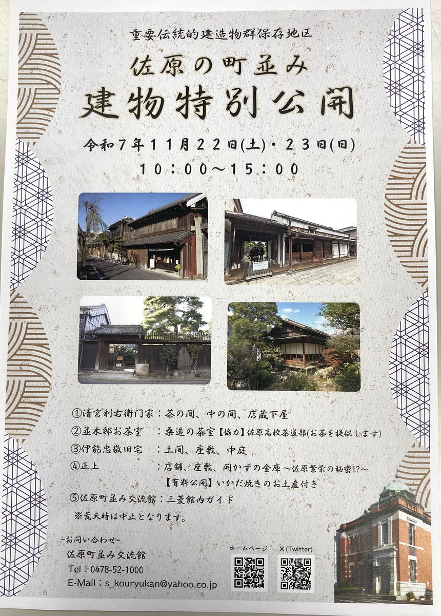 【佐原の町並み 建物特別公開】 11月22日(土)、23日(日) 佐原高校茶道部生徒さんによる抹茶のお手前もあります。 僕もお手伝いするつもりです😅 #伊能忠敬 #佐原の町並み #重要伝統的建造物群保存地区 #カーザアルベラータ #正上 #三菱館 #佐原町並み交流館 pic.x.com/bnLGBq13ig