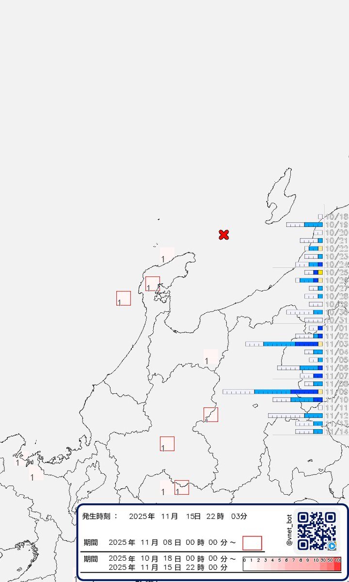 2025年11月15日 22時03分頃 の地震 佐渡付近 💬 最大震度:2 💬 マグニチュード:4.1 💬 深さ:10km 🔗 jma.go.jp/bosai/map.html… 🔗 data.jma.go.jp/multi/quake/qu… #地震 #佐渡付近 👉 x.com/vnet_bot/statu… pic.x.com/wQUPjPJyoe