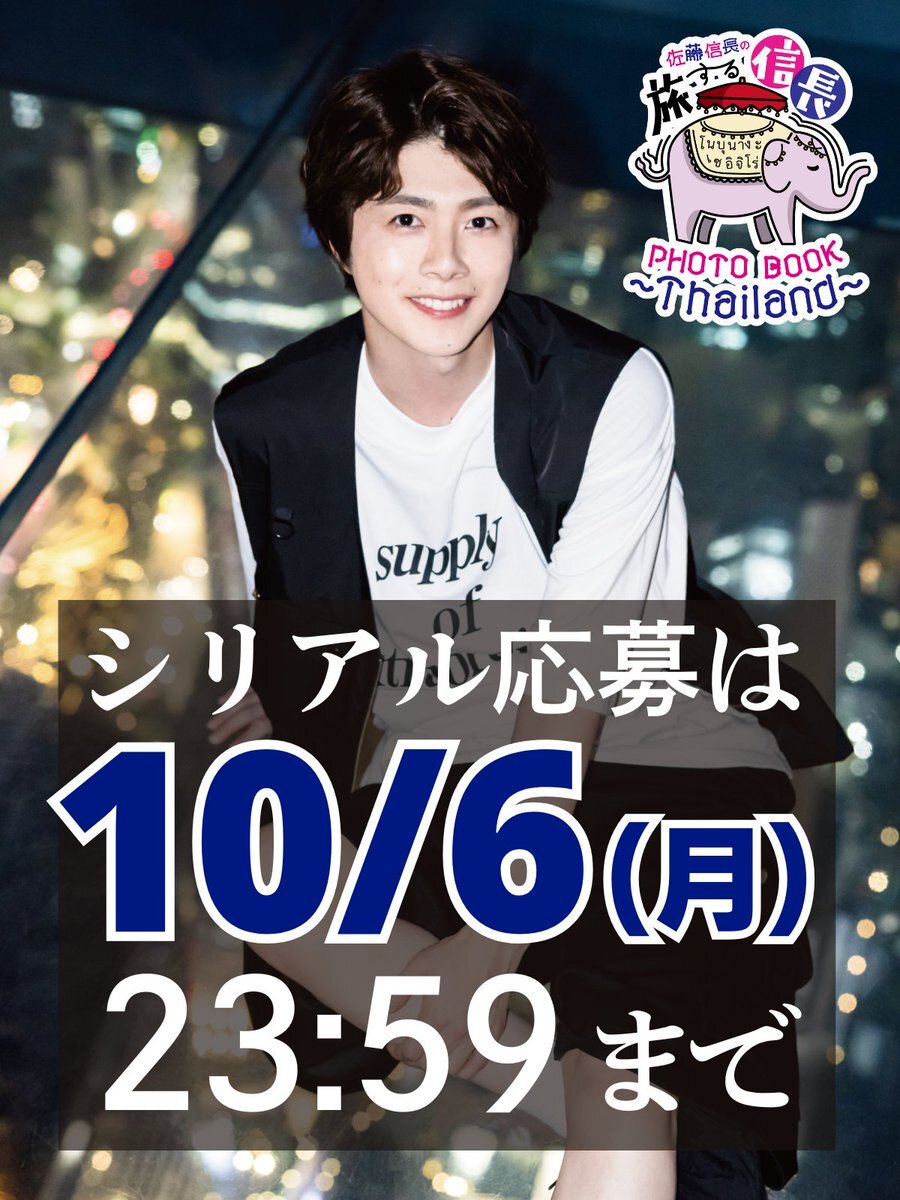 ⏰シリアル応募〆切は【10/6(月) 23:59】まで 📘#佐藤信長 #永田聖一朗 旅する信長PHOTOBOOK~Thailand~ シリアル特典会に参加される方は、 応募に必要なシリアルを確実にゲットできるよう 余裕をもってご注文ください📦 🔗フォトブック購入はこちら👇 x.gd/5ASIa pic.x.com/oPGijWIRGo