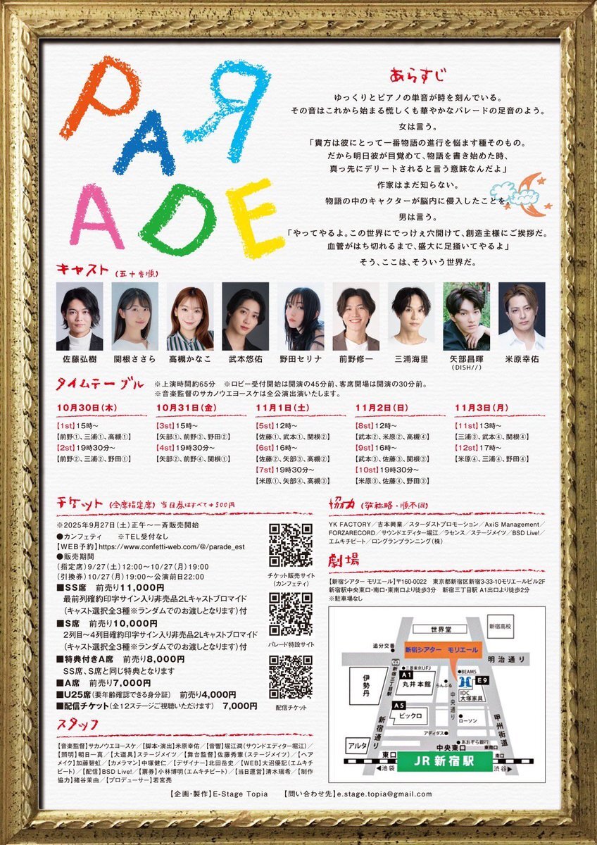 🌈#音楽朗読劇パレード 情報PickUp💡 #パレード2025 出演 🙍♂️#前野修一 さん 🙍♂️#米原幸佑 さん 🙍♂️#佐藤弘樹 さん 過去出演グッズは E-StageSHOPで通販購入可能💁 2022年 📕estageshop.thebase.in/items/66584391 2023年 📸estageshop.thebase.in/items/78232599 📕estageshop.thebase.in/items/78232536 2024年 📕estageshop.thebase.in/items/93069796