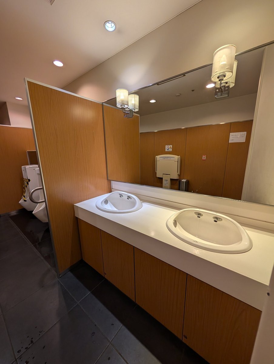 田無アスタ専門店街地下1階 ナカムラ水産近くの男性トイレ コメント:清潔かつ豪華な トイレです。 手洗い器に石鹸、ウォシュレット、 便座クリーナー、の僕の理想的な トイレ三本柱もちゃんとあります。 評価:★★★★★ 洋式便器:TOTO CS464M #トイレ #TOTO #佐藤満春さん推し pic.x.com/UHX6z3jyc9