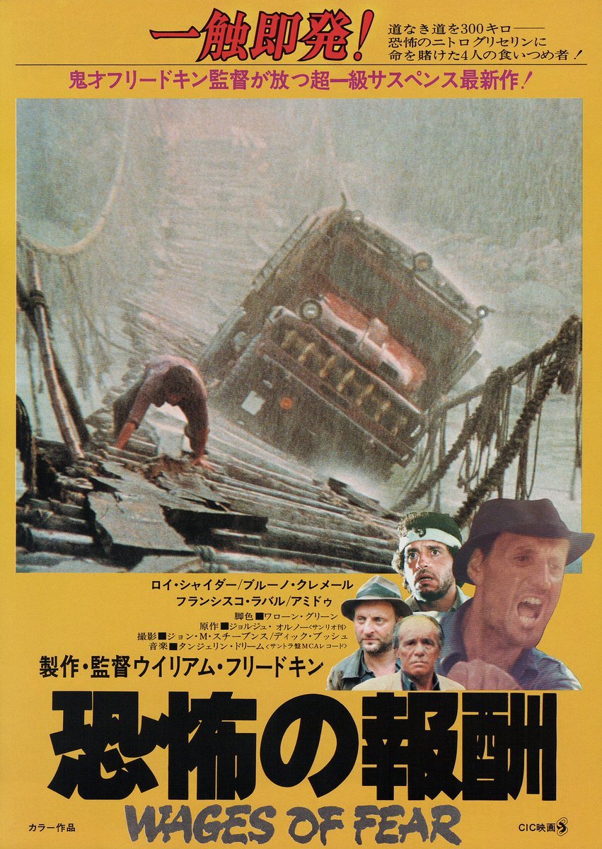 #体を張った危険な仕事映画 『恐怖の報酬』 南米の山奥の油田で発生した大規模火災を爆風で消火するのにニトログリセリンを運ぶ危険な仕事を描いた、吊り橋のシーンが有名過ぎる作品^_^ 劇中でのエグい爆発シーンで建物の前にいたエキストラさんも体を張っている^_^; pic.x.com/wrjh80PsJZ