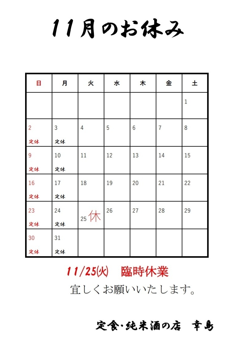 11/18(火) 11:30~14:00 営業しております🍁 ⭕11月の臨時休業 11/25(火) よろしくお願い致します #武蔵小杉 #ランチ #夜ごはん #焼魚定食 #定食と日本酒 #体調管理は食事から #AKABU岩手 #雪っこ岩手 pic.x.com/eItbrZmcjx