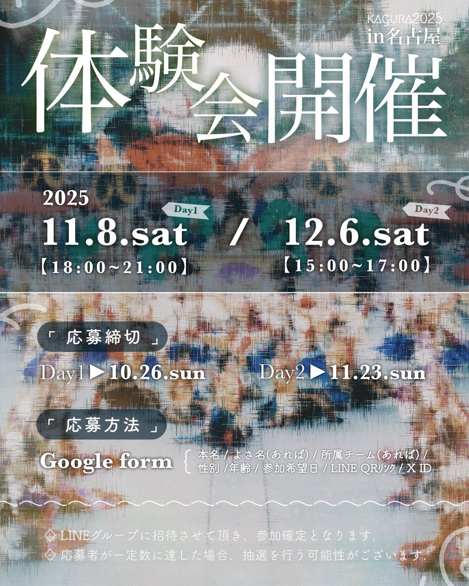 【🪭お知らせ🪭】 kaguraでは新メンバーを募集中! 経験者・未経験者共に大歓迎! 私達と一緒に踊ってみませんか? 体験会in名古屋を開催します✨️ ・11/8(土) 18:00~21:00 ・12/6(土) 15:00~17:00 以下フォームよりご回答下さい🪷 forms.gle/qWg8mFcLewFYvT… #どまつり #メンバー募集 #kagura