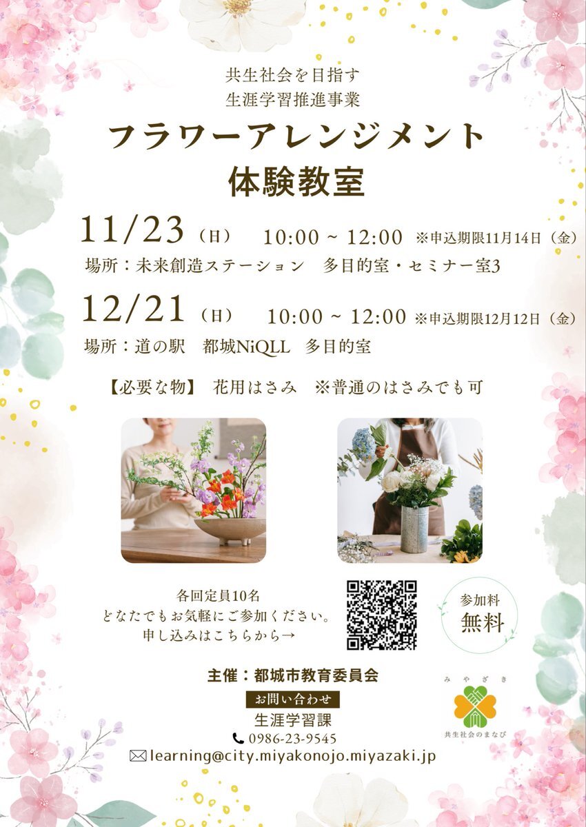【共生社会を目指す生涯学習推進事業】 共生社会を目指す生涯学習推進事業の一環として、フラワーアレンジメント体験教室を開催します💐 障がいの有無にかかわらず、どなたでもご参加下さい🤲 《申込はこちらから》 otetsuzuki.jp/miyakonojo-cit… #都城市 #都城 #生涯学習課 #生涯学習 #共生社会 #体験教室 pic.x.com/5AdfhVBEv5