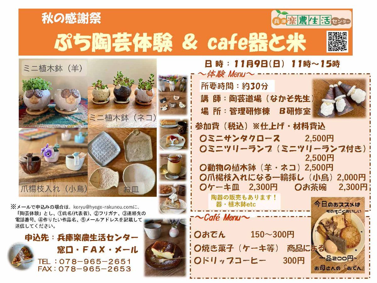 11/9(日) 秋の感謝祭イベント情報 🎄ぷち陶芸教室&cafe器と米🎄 粘土で動物の植木鉢や爪楊枝入れ、クリスマスにピッタリの置物など、可愛い役立ちアイテムが作れます🐱 併設カフェではおでんやケーキ、コーヒーも楽しめます! 体験の合間にほっと一息いかがでしょうか?☕ #体験教室 #焼き菓子 #楽農 pic.x.com/63PFmhJ9lE