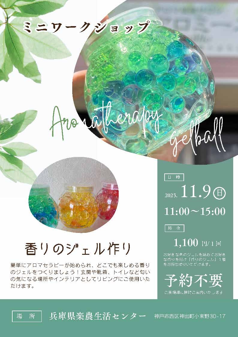 11/9(日) 秋の感謝祭イベント情報 ✨アロミーユ 香りのジェルづくり✨ 好きな色・香りのジェルを瓶に詰め、お家でアロマセラピーを楽しもう🍀 1瓶1,100円で予約不要🌹 匂いの気になる場所に置くもよし、インテリアに飾るも良しの素敵なアロマ体験をお楽しみください❤ #体験教室 #ワークショップ pic.x.com/EGCHWo7sPL