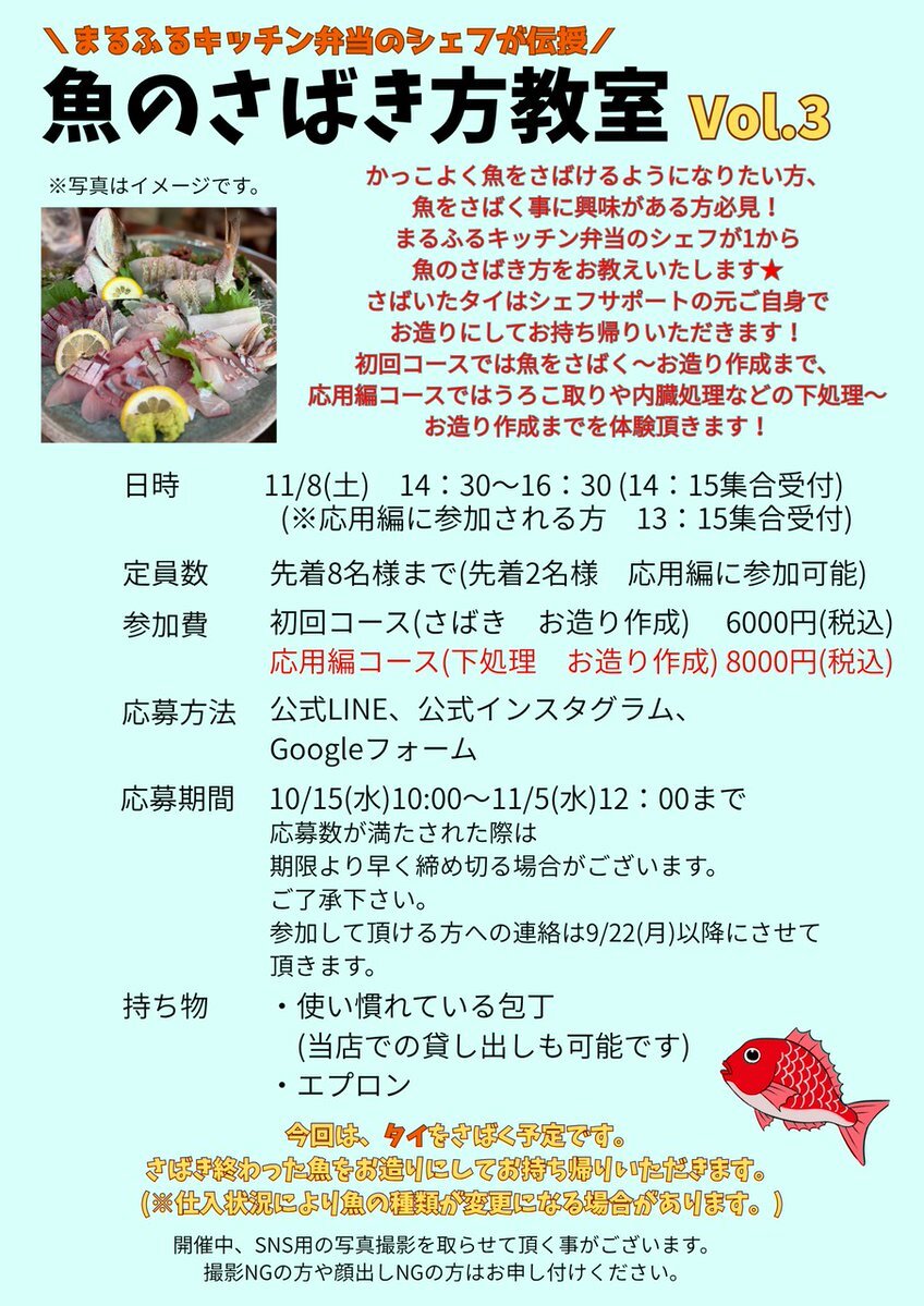 おはようございます📚️ 10/27 #姫路 の天気は☀️ 魚のさばき方教室Vol.3の開催が決定しました〜👏 今回は初回コースと応用編コースの2種類をご用意! 気になる方は下記のURLをご覧下さい🐟️ instagram.com/p/DPz4dFTAe24/… #魚さばき #料理教室 #画像は前回分 #企業公式が毎朝地元の天気を言い合う