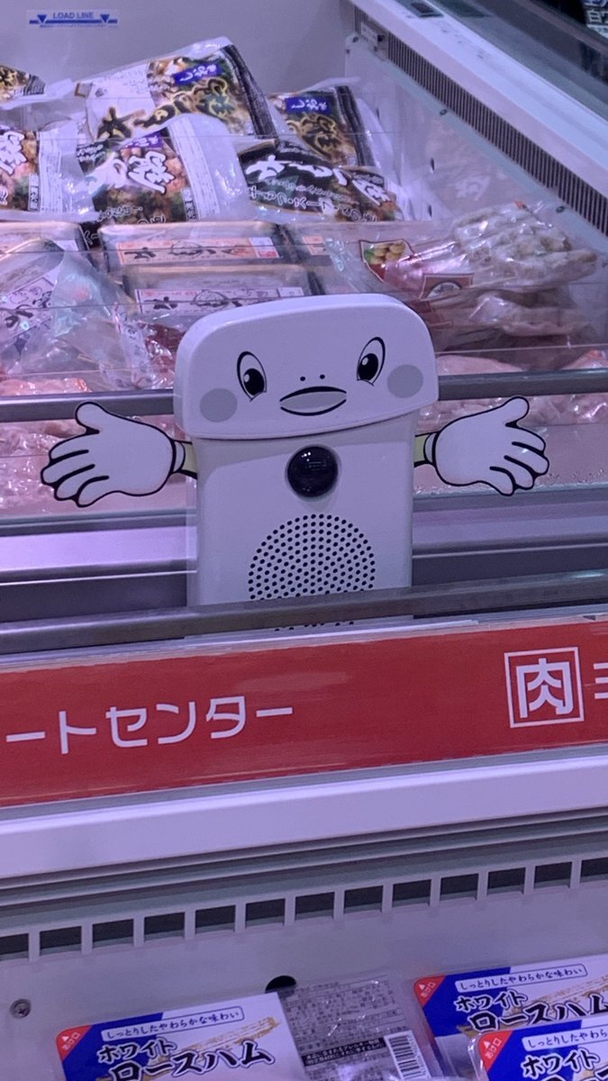いつも行かないスーパーに行ったらこんなの居た笑 お肉コーナーと惣菜コーナーに一体ずつ。他にも居たのかな???😆 なかなか愛嬌あるね⭐︎ #スーパー #スーパーマーケット #何? pic.x.com/Tfi4sYxjBl