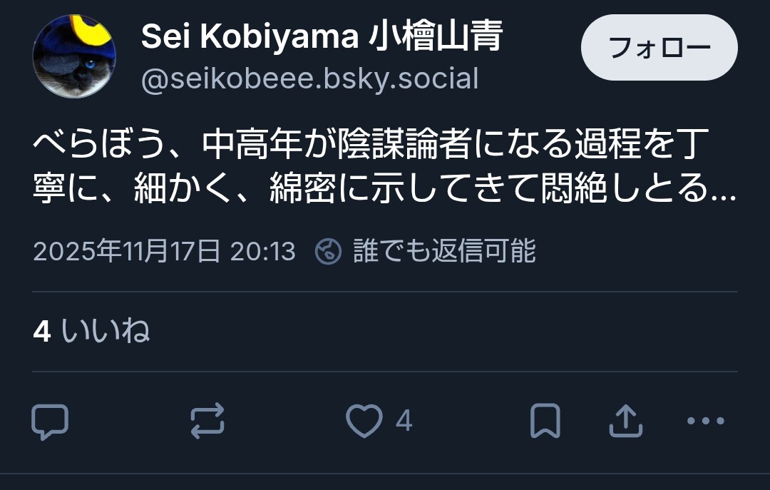今回のサブカル大河のエピの批判として、フェミ仲間と絶縁し、ポリコレが使えない代わりに陰謀論という別の主語を用いてヘイトか…BLや文化描写が足りないのならその辺りについてメインで語ればいいのに、大きな主語でしか批判できないのに、歴史ライターと名乗って恥ずかしくないの? #何かを見た pic.x.com/SyxXzaq1u9