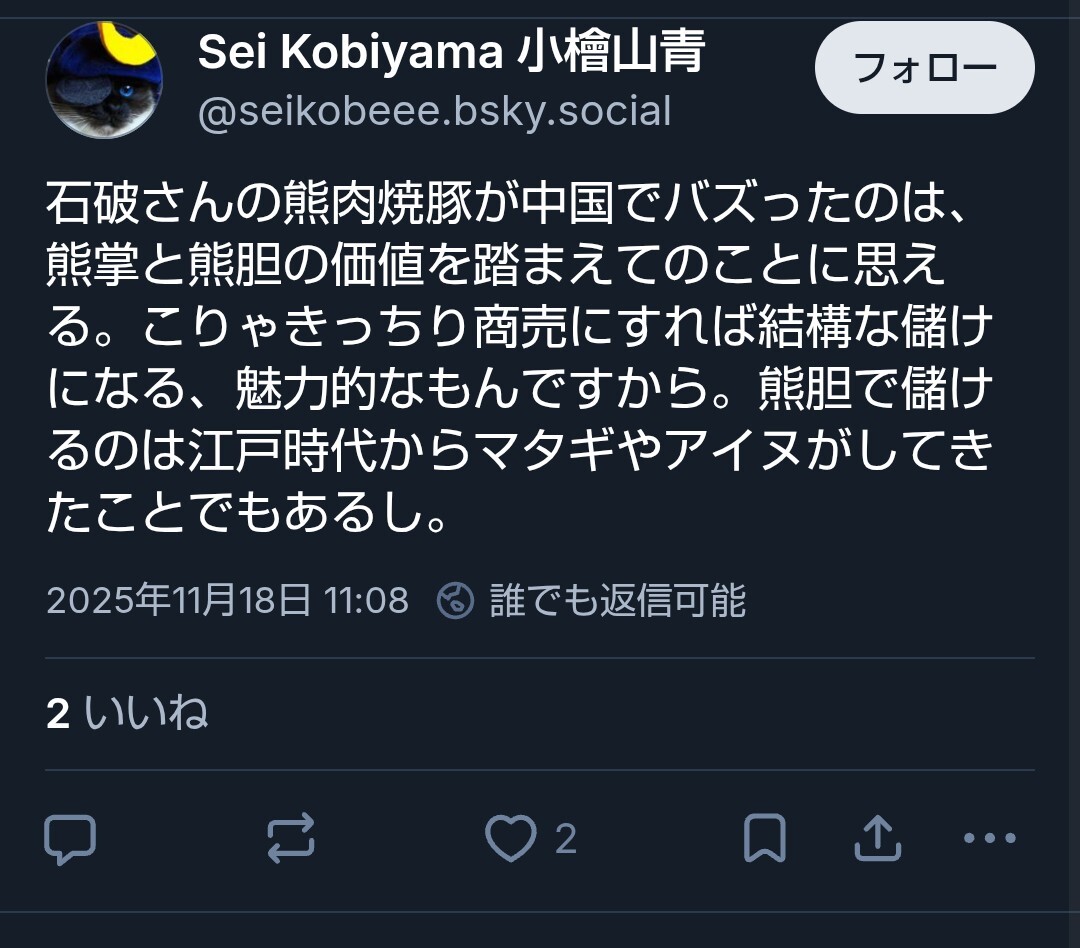 #何かを見た 北海道猟友会の会長「クマ駆除から猟友会外してほしい」「一人も会員なくしたくない」だそうですが、熊肉を取るために命をかけるのは誰なんだね? 商売にしたら儲かると思うなら自分でクマと戦ってくればいいと思います。 pic.x.com/8NsUqGwp6S