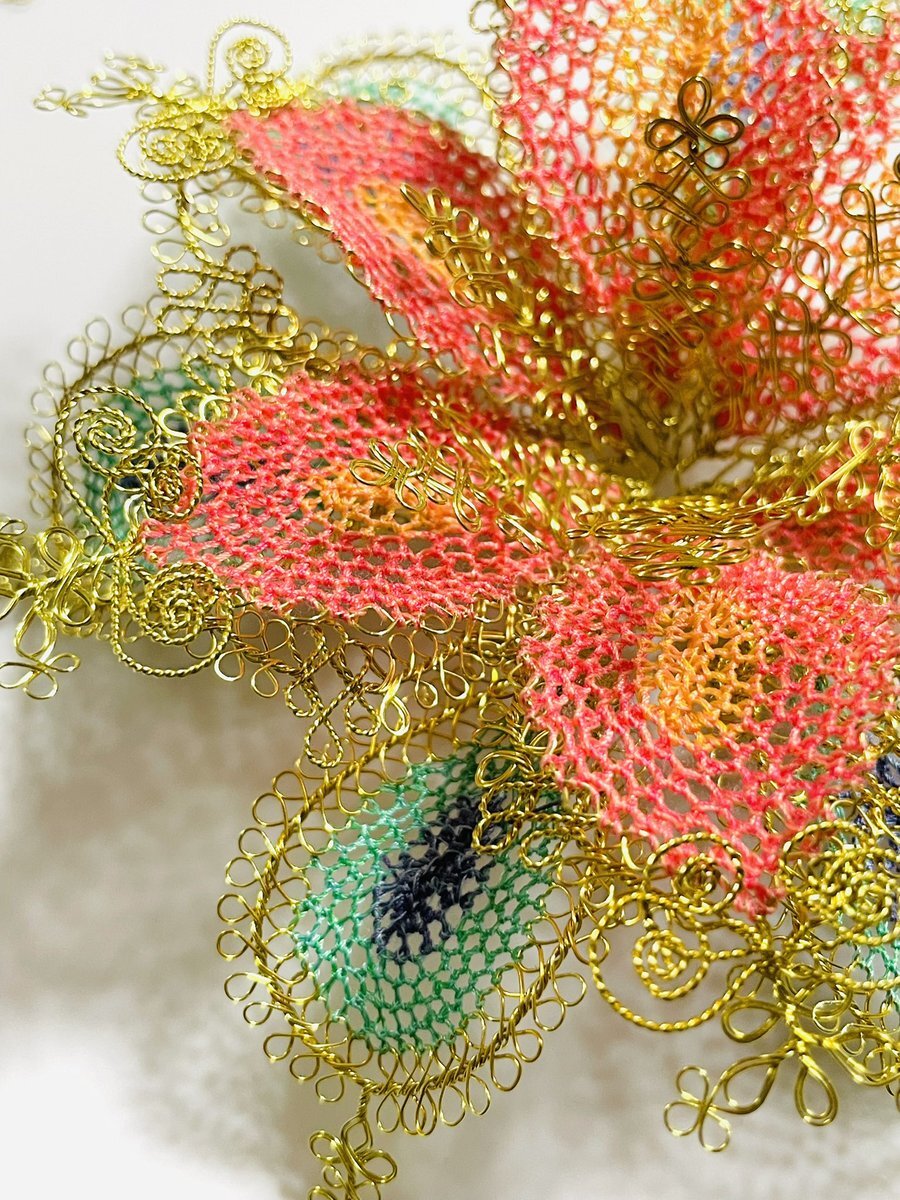 0.28mmの針金とミシン糸を編んで作品制作しています。 写真は去年の作品展で展示した「Flower」 10月4日から作品展「Heart」が始まります!詳細リプ欄に貼りますので是非遊びに来てください❤️ #作品を載せて自分の作品を知ってもらおう #作品展 pic.x.com/Pcw8NLK0Zx