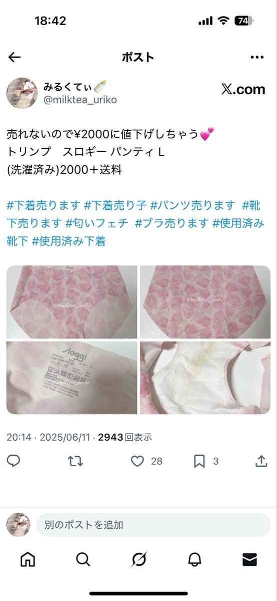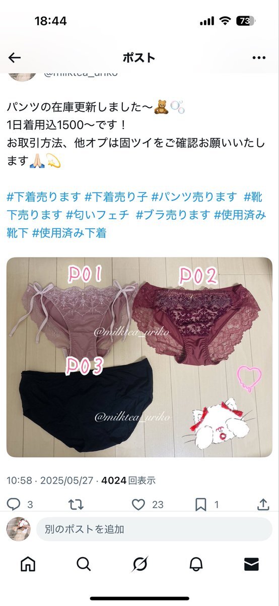 3日履き 1300円にお値下げ⚠️ 脱いですぐジップロックいれたよ🥹 DMお待ちしておりますᡣ ♡⋅ ̫⋅𓈒 ა #売り子女子 #パンツ売り子 #使用済み下着 #使用済み靴下 #下着売り子 #使用済みパンツ #使用済みパンツ売ります #下着売ります #使用済み下着売ります #パンツ販売 x.com/ranrandyo/stat…