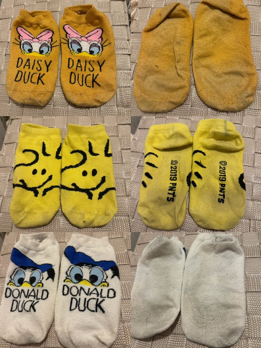 愛用の激臭靴下です🎵 1日着用〜! お仕事たくさん頑張って汗臭い💦 毛玉たくさん付いていて、使用感たっぷり🤍 ぺたぺたに履き潰してます✋ #くつした #靴下 #靴下売り子 #使用済み靴下 #使用済み靴下売ります pic.x.com/6GWRxx8f9W