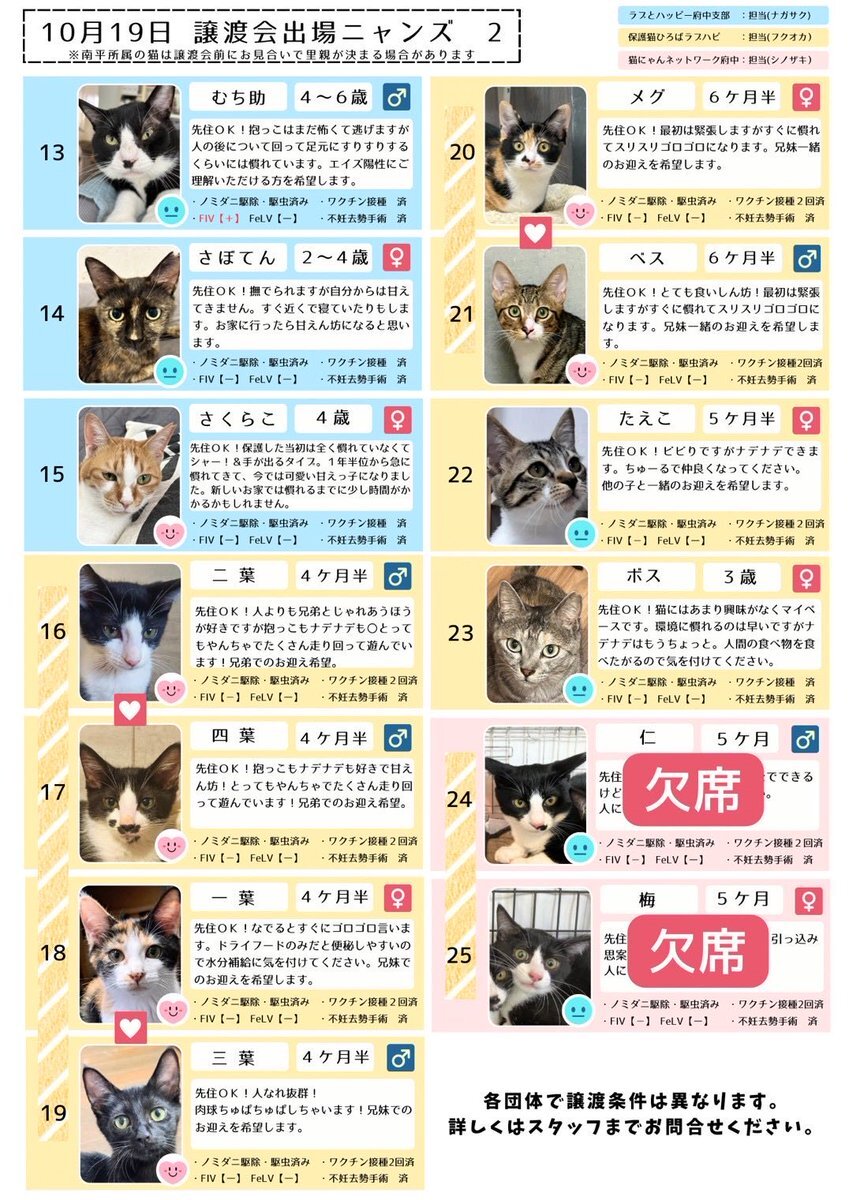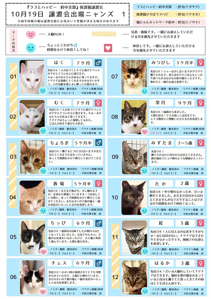 いよいよ本日です⋆͛📢⋆‼️ 多くの方がお越しくださるのをお待ちしております🙏 出場メンバーに変更がでました🙇‍♀️ #譲渡会 #保護猫との暮らし #保護猫を迎える #府中市 pic.x.com/2CUgr24D0q x.com/love_haapy_cat…