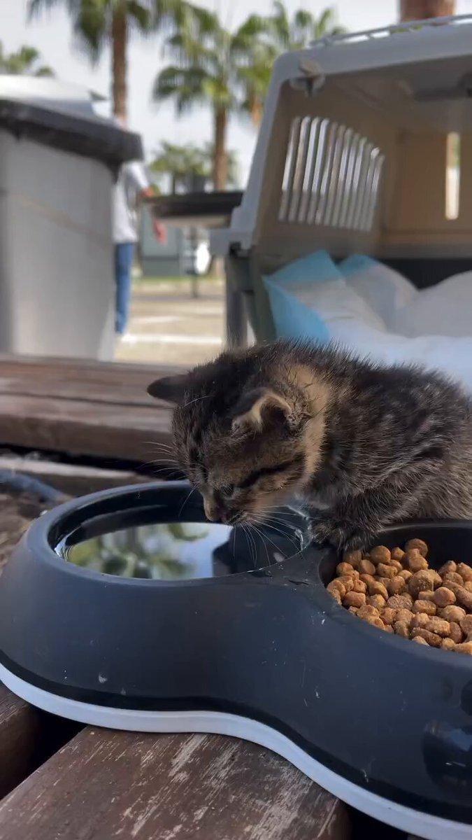 The man put out a bowl of food for the stray cat, but instead of eating, she took all her kittens to his car. As a result, he adopted the whole family. God bless him. 🙏❤️