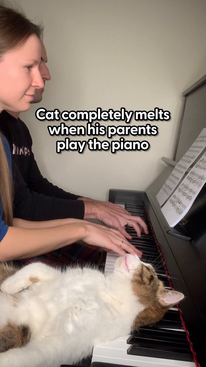 クロアチア在住のピアニスト夫妻が飼っている音楽好きの猫について紹介している動画。この猫は夫妻を毎朝ピアノの前まで導いて演奏中に鍵盤の上でよく寝ているようです