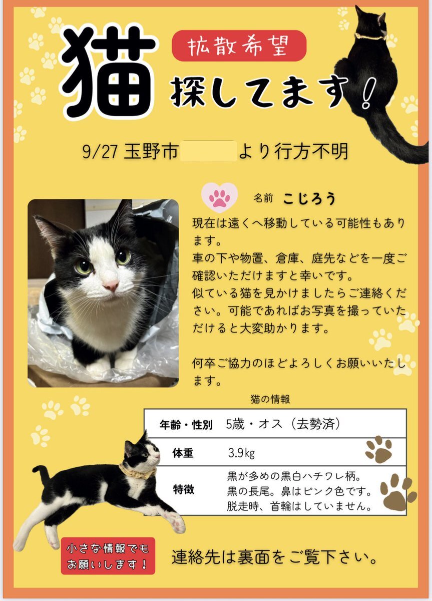 ハチワレ猫の「こじろうちゃん」が迷子です 情報提供、保護、拡散のご協力よろしくお願い致します #迷子猫 #迷い猫 #保護目撃 #黒白 #黒色多め #拡散希望 #玉野市岡山市南区南部 x.com/kojiro_sousaku…