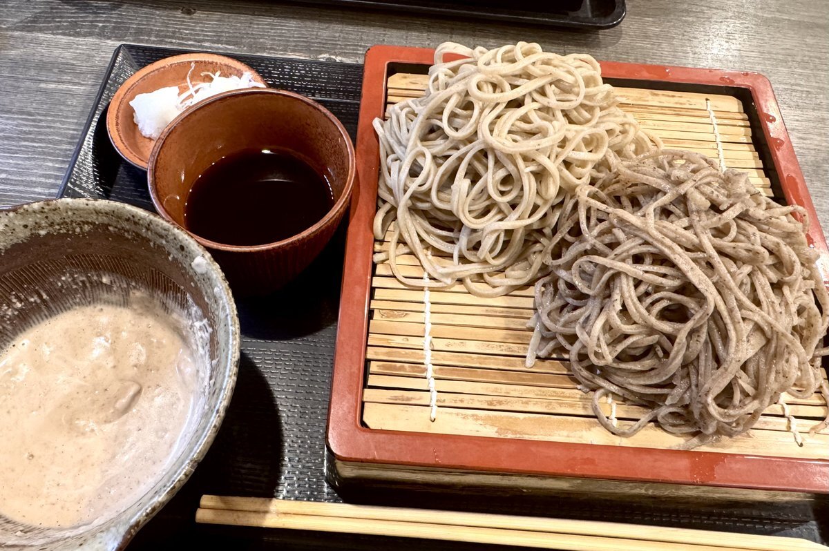 さらば信州! 美味しい信州そばに大満足! 挽きぐるみと十割蕎麦の合盛り。普通のおつゆと胡桃をその場で練るクルミだれの2種で大満足。 ただ! このお店の夜の顔の心惹かれる各種メニューと日本酒のラインナップが凶悪で、年内もう一度来ることを誓いました。 #出張飯 #さわの庵 #長野 #信州そば pic.x.com/8uRXwPELlV x.com/miyabitale/sta…