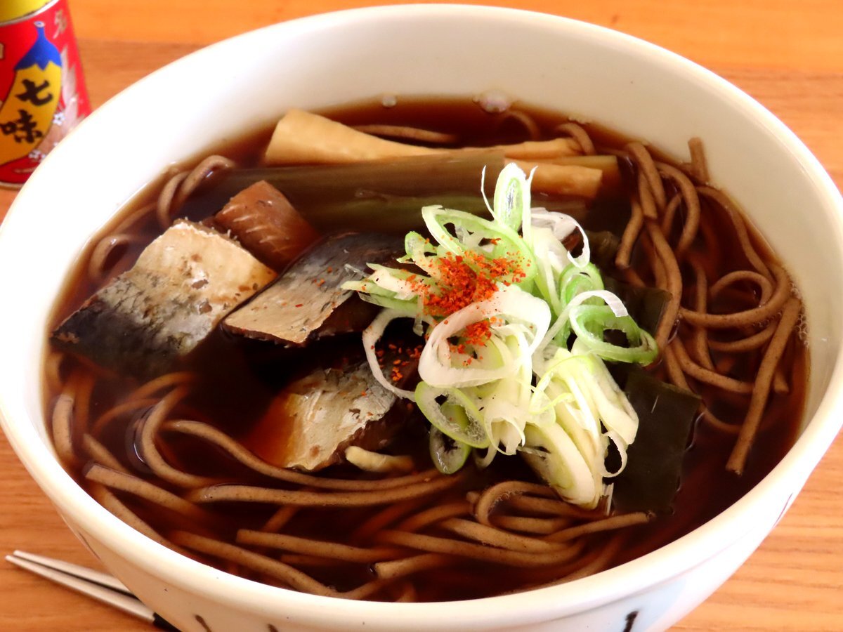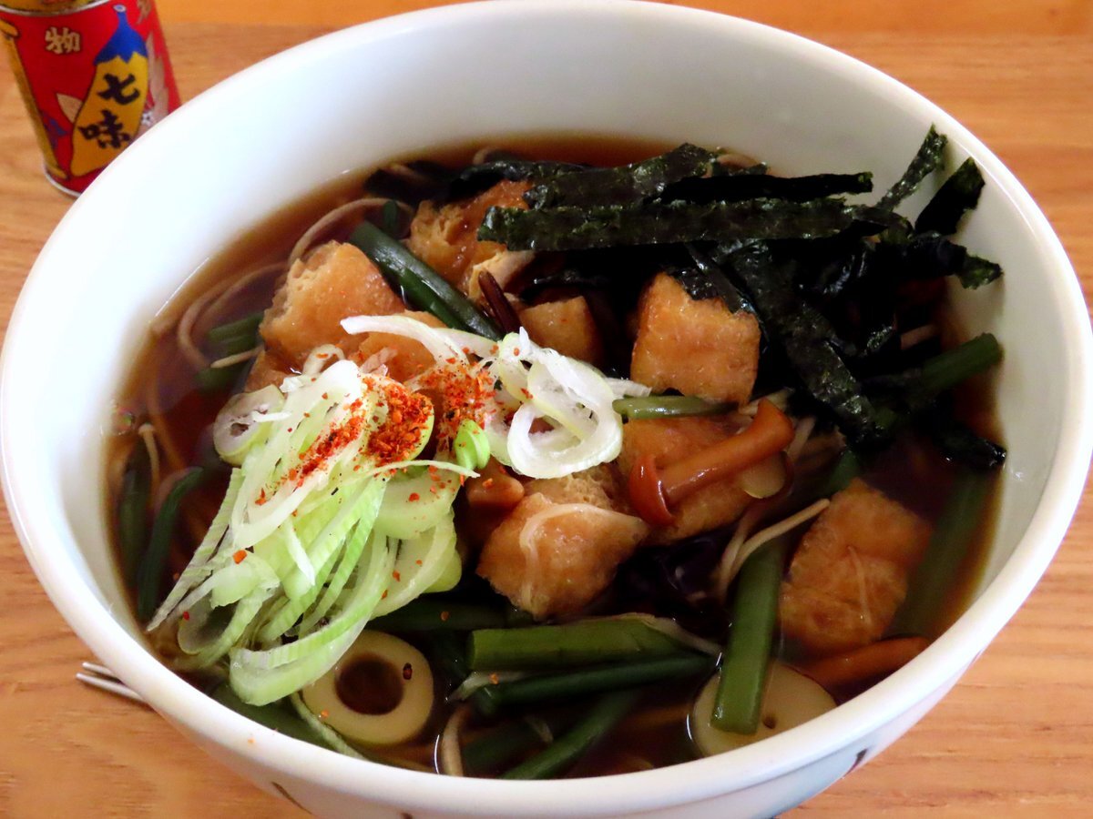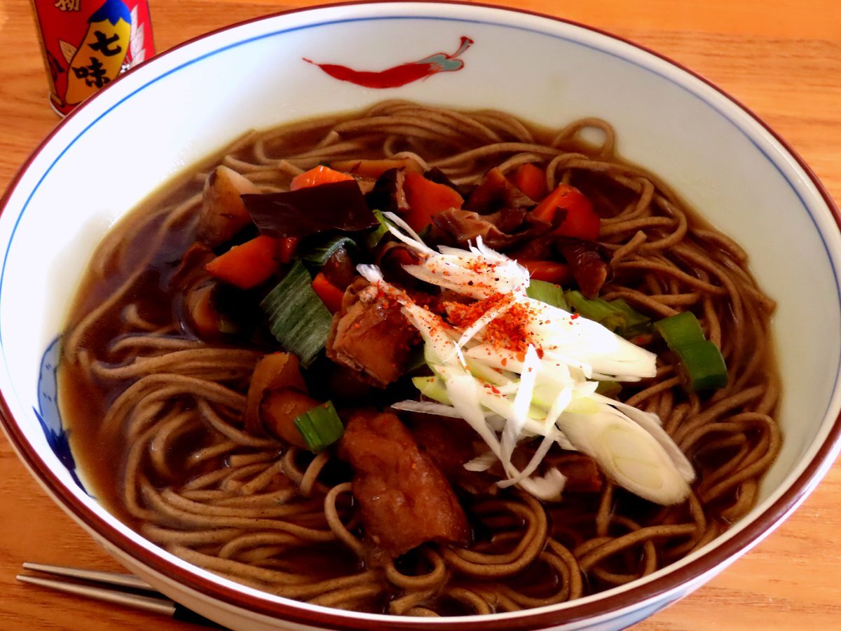 昼餉の一杯;"#建長蕎麦"😁 根菜出汁殻揚胡麻油煎酒かえし三温糖煮〆😉 精進出汁延正油葱青身煮立🥰 #挽きたて香る信州そば(熱掛)具薬味一式deぞぞぞ~!👍 葱酒七味で精進大崩れ(゚д゚)ウマー❗️🤣 #昼メシ #けんちん蕎麦 #建長汁 #巻繊汁 #精進出汁 #本かえし #三温糖 #乾麺 #信州ほしの #星野物産 pic.x.com/kDMG6AALam