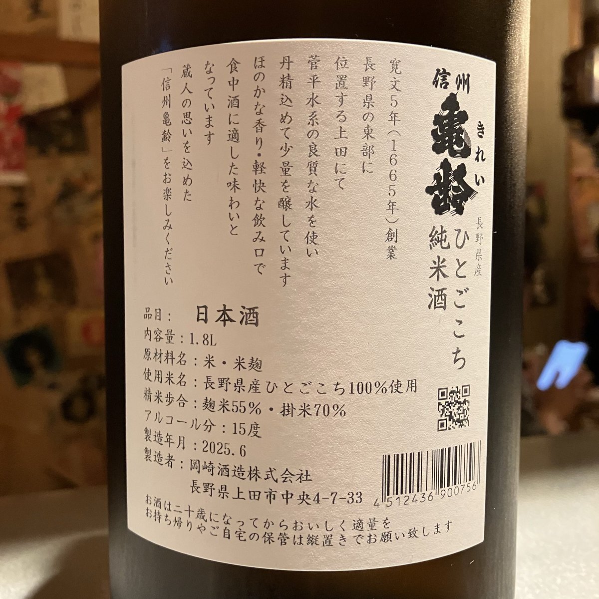 信州亀齢 ひとごこち火入れ 軽快な口当たりに爽やかな甘み、酸も相まって非常に心地よい飲み口ですね。 #日本酒 #信州亀齢 #岡崎酒造 pic.x.com/cAEtC7laHW
