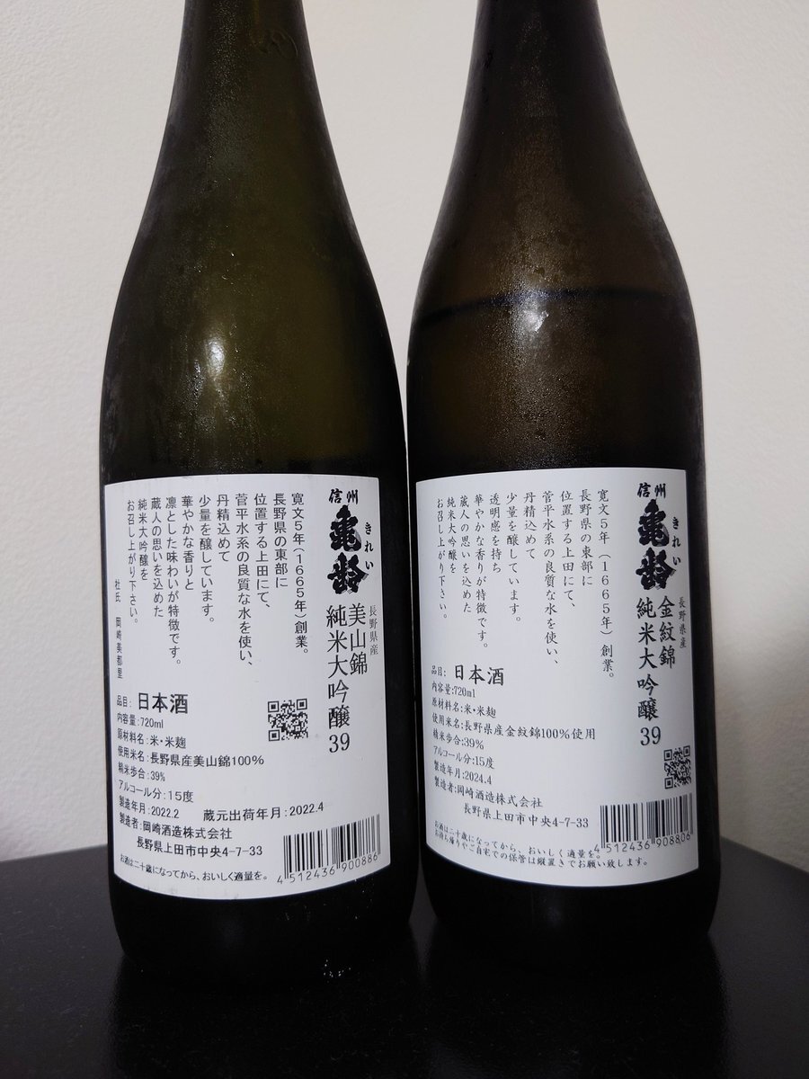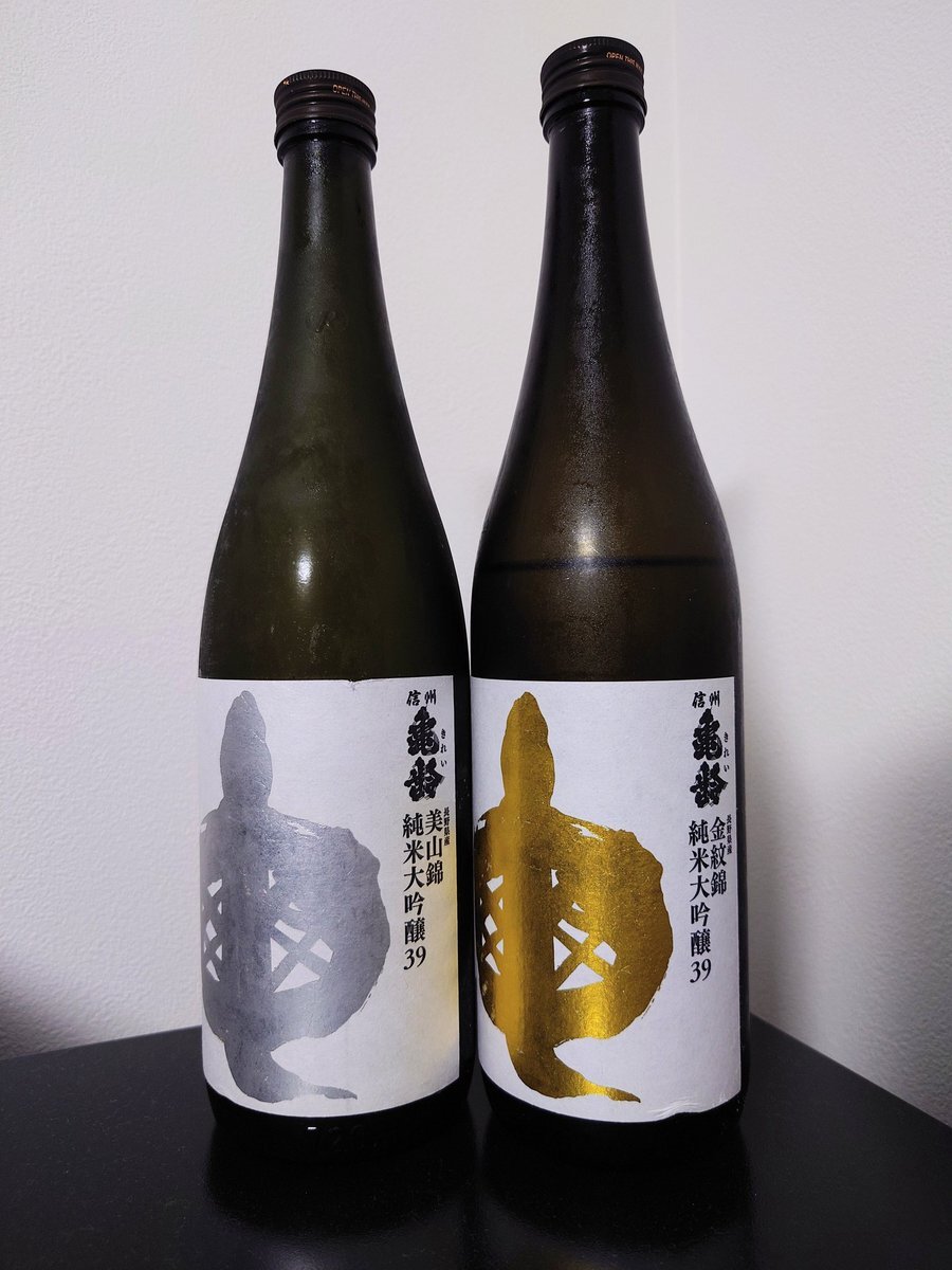 本日はこちら☺️ 【信州亀齢 金紋錦 純大】🍶 【信州亀齢 美山錦 純大】🍶 金銀の飲み比べ😎 金紋錦は甘味は強めの甘旨🤭 美山錦はスッと入って飲みやすいクリアな味わい🙄 個人的には銀亀の方が好みかなぁ🤔 #日本酒 #信州亀齢 pic.x.com/IqQApiBpZj