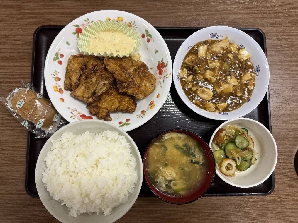 今松本は雨です☔気温も下がっているので学生さん暖かい支度をして下さいね🤗 本日の夕食はチキン南蛮、麻婆豆腐、きゅうりの中華和え ニラと卵のスープです😃 #松本市下宿 #信州大学 #女鳥羽ハイツ飯 pic.x.com/IT1FAx11pn