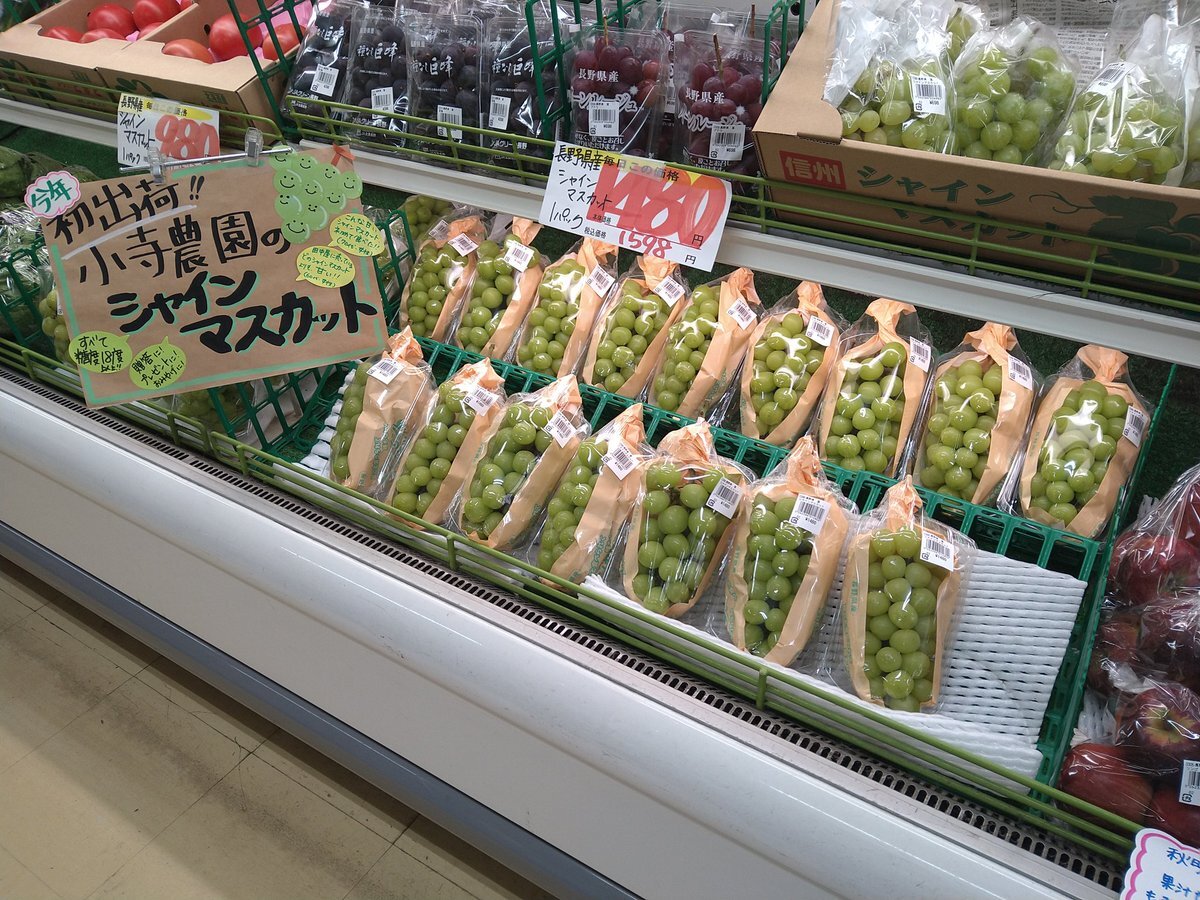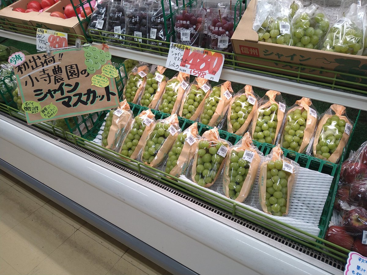 小寺農園のシャインマスカット、本日、「フレッシュトップ田中屋」に入荷いたしました。 本人が納得したものだけ納品するため、早い者勝ちになりますが、宜しくお願いいたします。 #信州新町 #小寺農園 #シャインマスカット #フレッシュトップ田中屋 pic.x.com/dU6p7S2ZqM