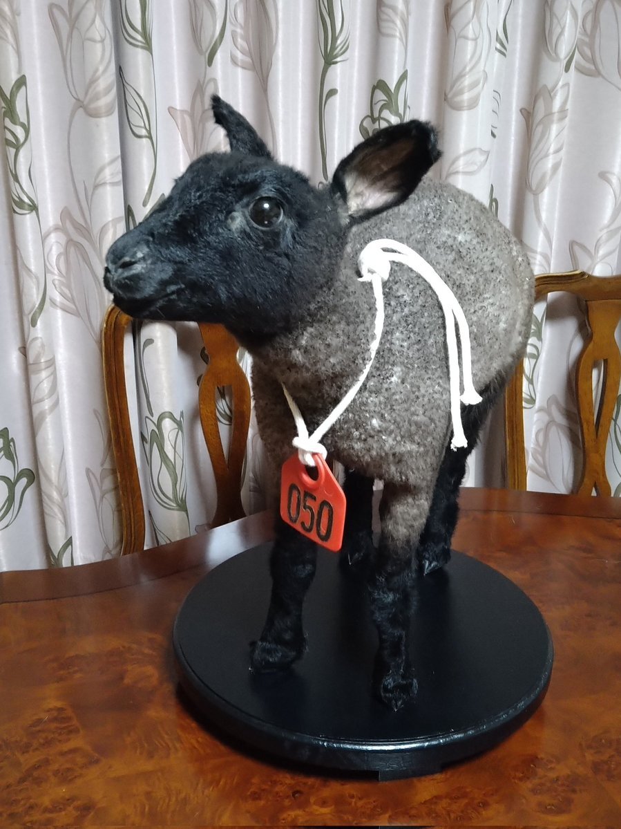 赤の050番が、剥製になって戻ってきてくれました。 前足の骨の奇形で起立できず、やむを得ず安楽死の処置をした子です。 「生きている時に立ちたかったよね。たくさんの人に見てもらおうね。」と声をかけました。 #信州新町 #信州新町羊同好会 #島田緬羊牧場 pic.x.com/QIqDrz5Ydd